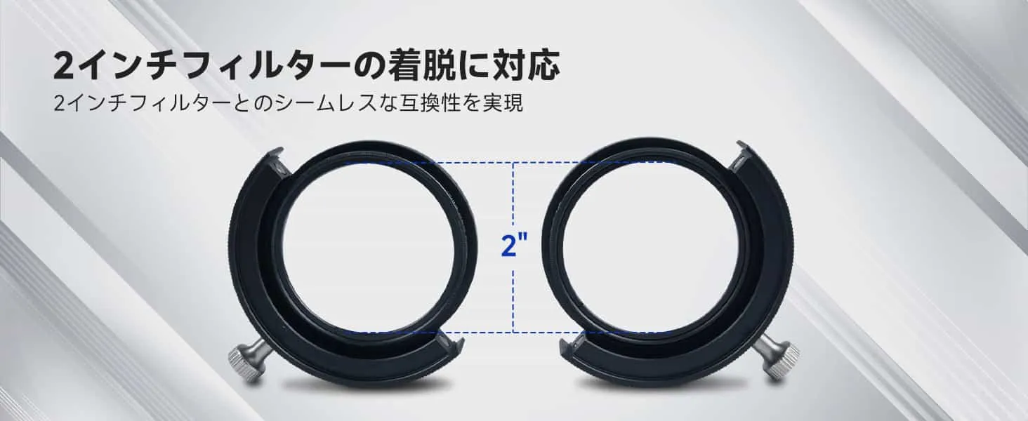 4 | レビューデュアルマグネット設計でフィルターを強力に固定し、脱落リスクを低減。フィルターを高速切り替え可能で、天体撮影の効率を大幅に向上。2インチのデュアルサイズ対応で多様な観測ニーズに柔軟に対応します。光漏れ防止ロック構造と20mm超薄型設計で、広角観察時の画質を確保します。高精度CNC一体成型の軽量金属ボディは耐久性に優れ、専用収納ボックスで付属品を整理可能。