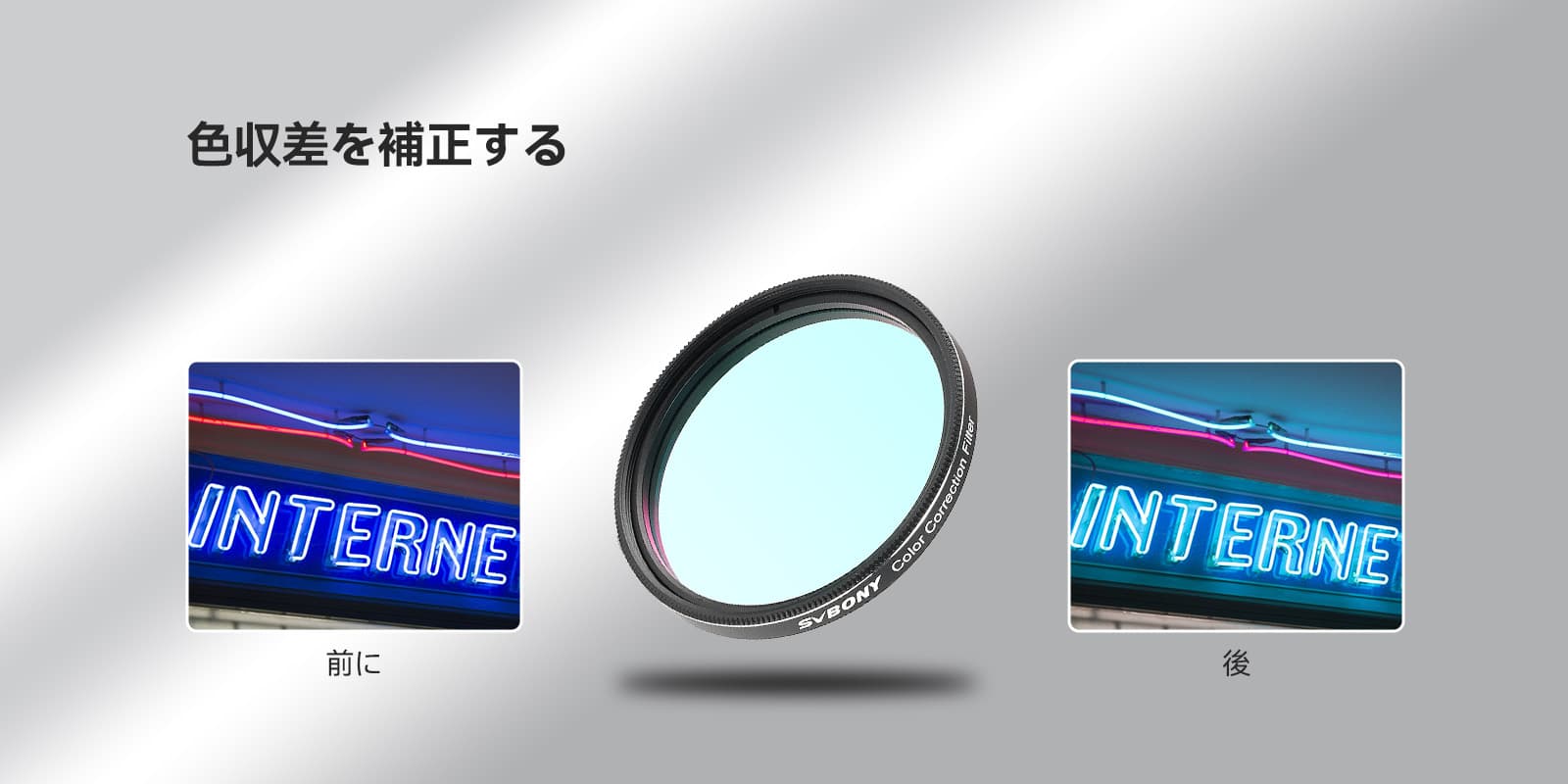 併せて、青色のスペクトル範囲で干渉する迷光も50% 以上抑制する優れた補正フィルターです。