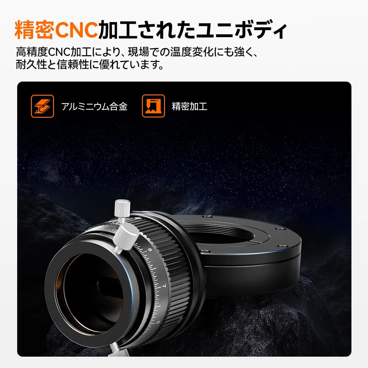 4、高精度・高耐久構造:アルミニウム合金を精密CNC加工で製作しており、強度と耐久性に優れ、屋外の過酷な環境でも変形せず安定した性能を発揮します。