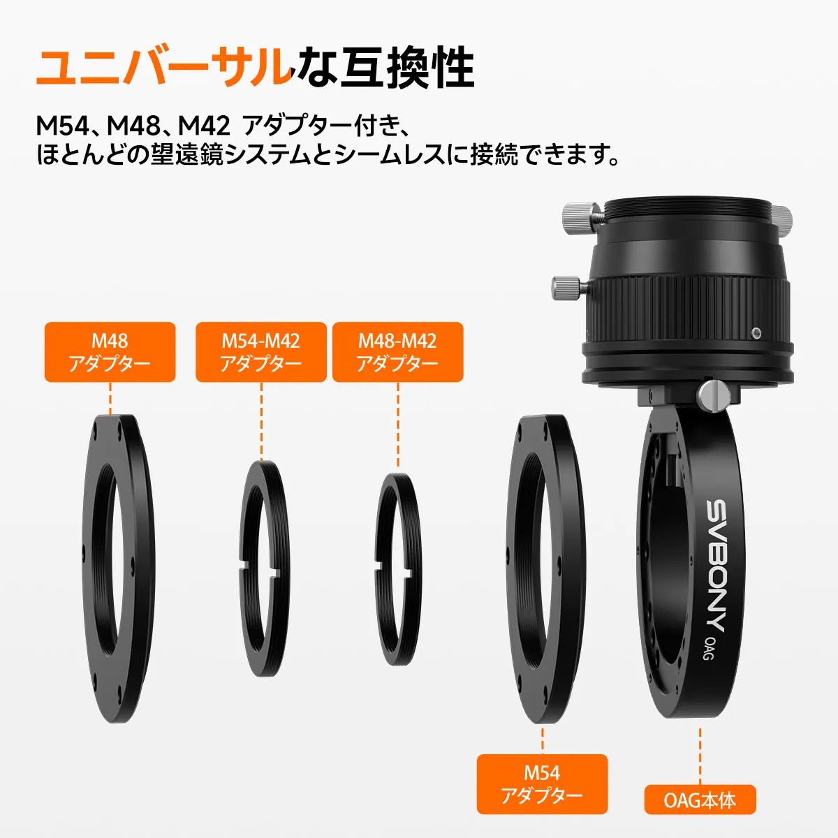 | 付属アダプター | M48、M42-M54、M42-M48 |