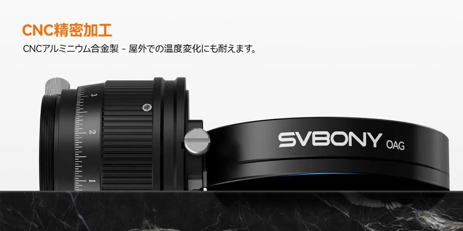 オフアクシスガイダー(OAG)は、プリズムでメイン撮影光路からガイド用光を分岐し、同一光路上でガイドカメラが星を捉えることでオートガイド精度を向上させる装置です。最大の特徴はガイド鏡が不要になることで、システムの軽量化とコンパクト化を実現し、ガイドスコープのたわみによる誤差を排除できるため、特に焦点距離の長い望遠鏡において高精度で安定したガイドを可能にします。SV238 オフアクシスガイダーの最大の特徴は、大型プリズム設計とデュアルヘリカルフォーカサーです。大型プリズム(8mm x 14mm)は、より多くの周辺の星を捉えることができ、ターゲットを見失う可能性を低減します。デュアルヘリカルフォーカサーは、天体写真撮影機器の高精度なフォーカスと柔軟な構成に対するユーザーの要件を満たします。