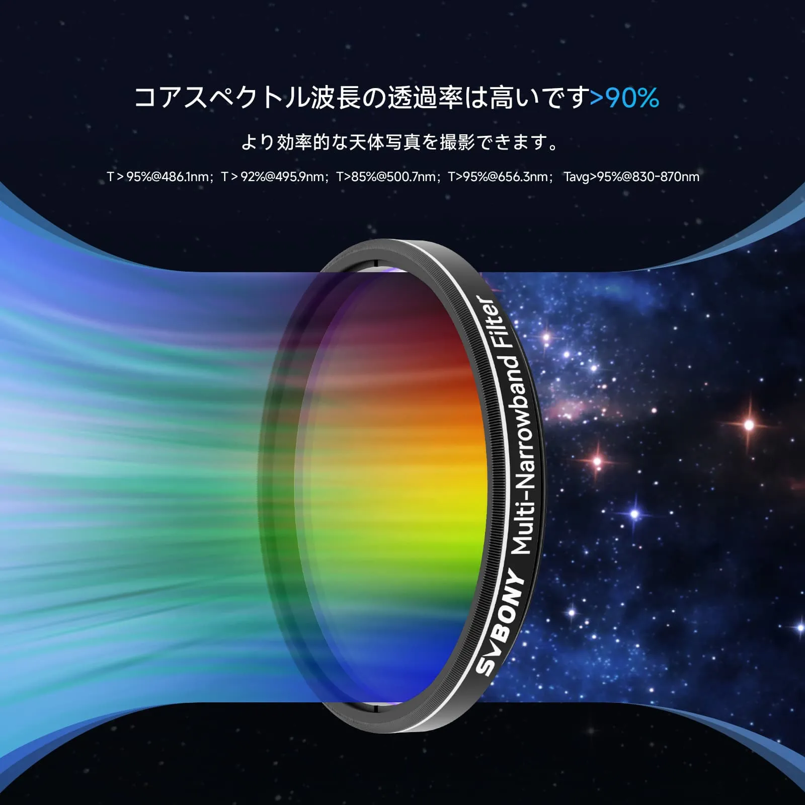 SVBONY SV240 マルチパスバンドフィルター ピーク透過率>90% デュアルバンドパスフィルター