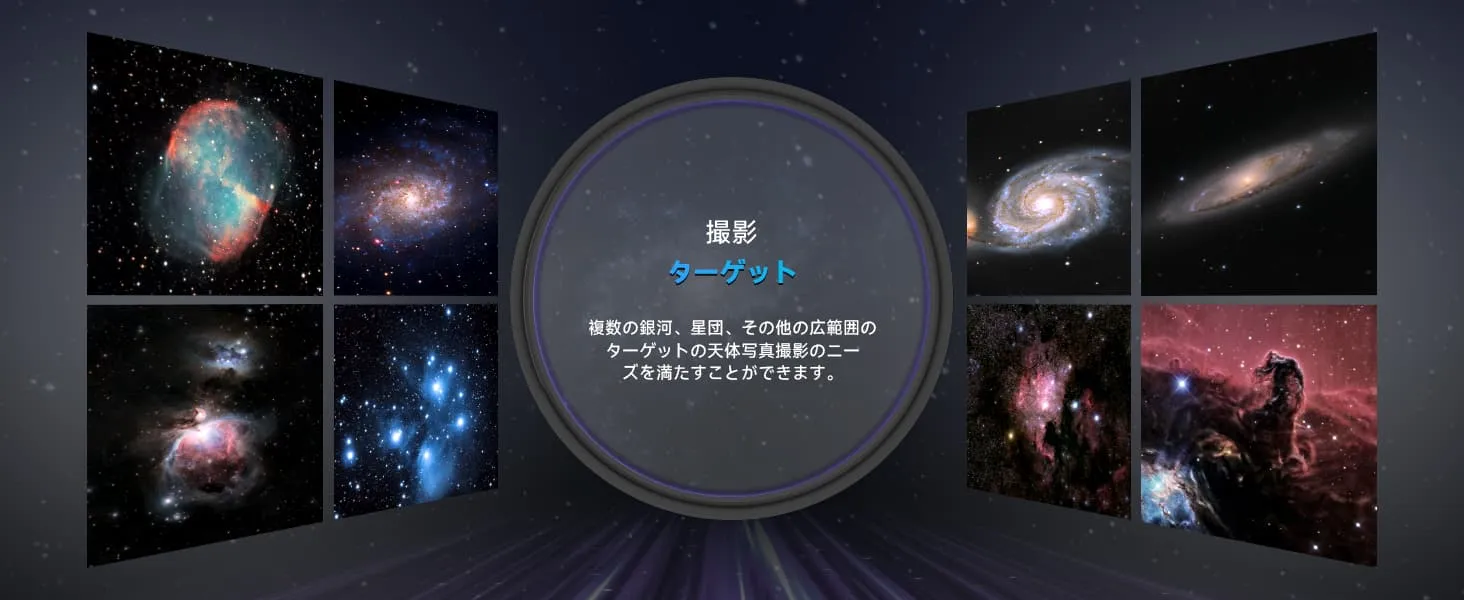 幅広い用途に使用可能です。マルチパスバンドフィルターと併用するで、星雲の撮影ニーズを満たすだけでなく、銀河や星団の撮影もサポートします。より多くの種類の撮影対象を撮影できます。 SV240 マルチバンドパス フィルターはお客様の撮影ニーズをほぼ満たすことができます。複数のフィルターを使用せずに、さまざまな撮影対象を撮影できます。従来のフィルターが銀河や星団の撮影に適していないという問題を解決します。 SV240 マルチバンドパスフィルターは、ほぼすべての深空天体を撮影できます。