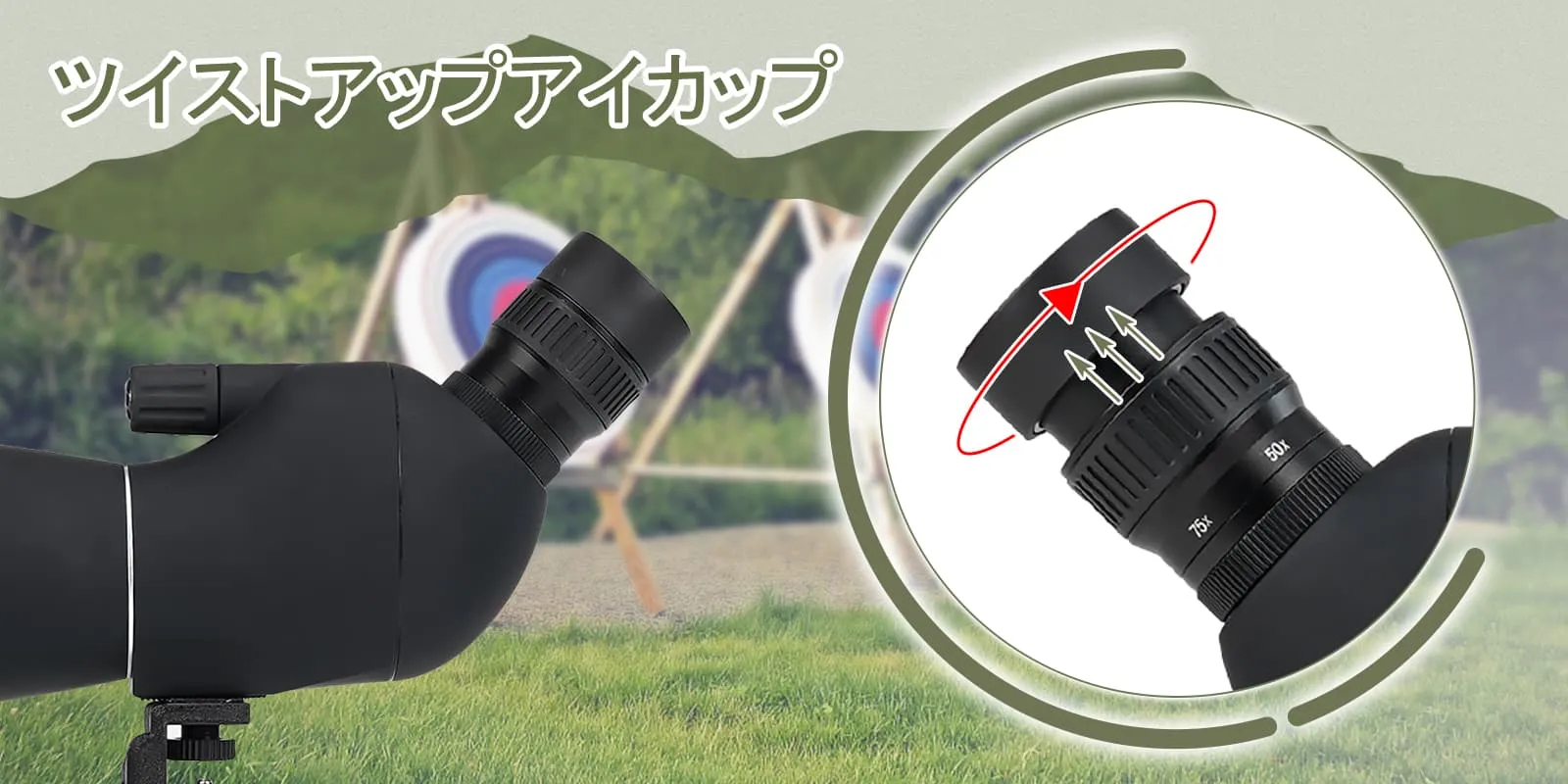 2.ツイストアップアイカップ。 さまざまな視力を持つ人々に適したスポッティングスコープ。 また、近視ユーザーは眼鏡を外す必要がなく、簡単に観察を楽しむことができます。 つまり、メガネをかけているかどうかは関係ありません。 快適な観察位置を見つけることができます。