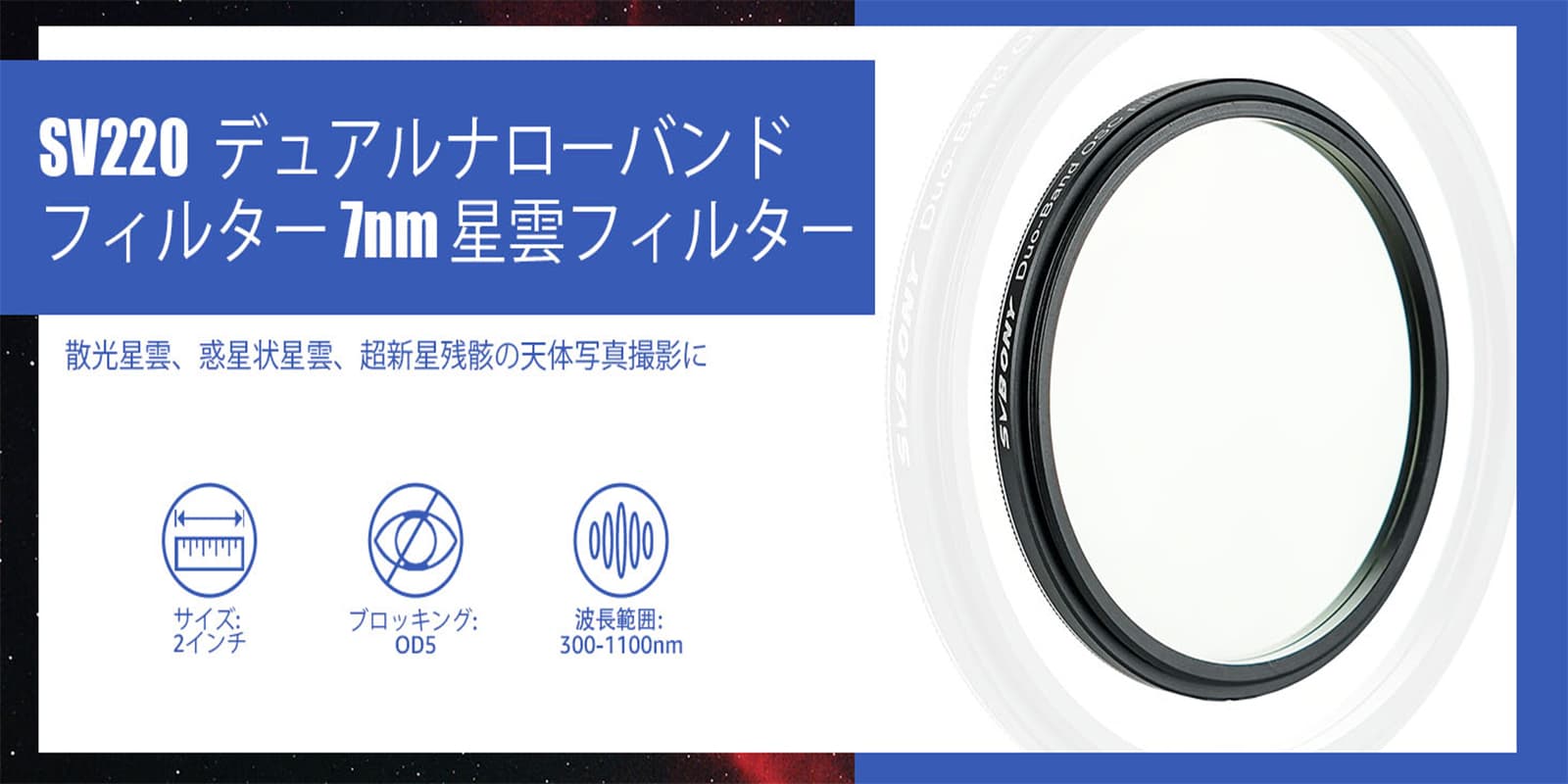 SV220 デュアルバンド 7nm 星雲フィルター 狭帯域フィルター FWHM7nm CMOS天文カメラ用 天体撮影 星雲