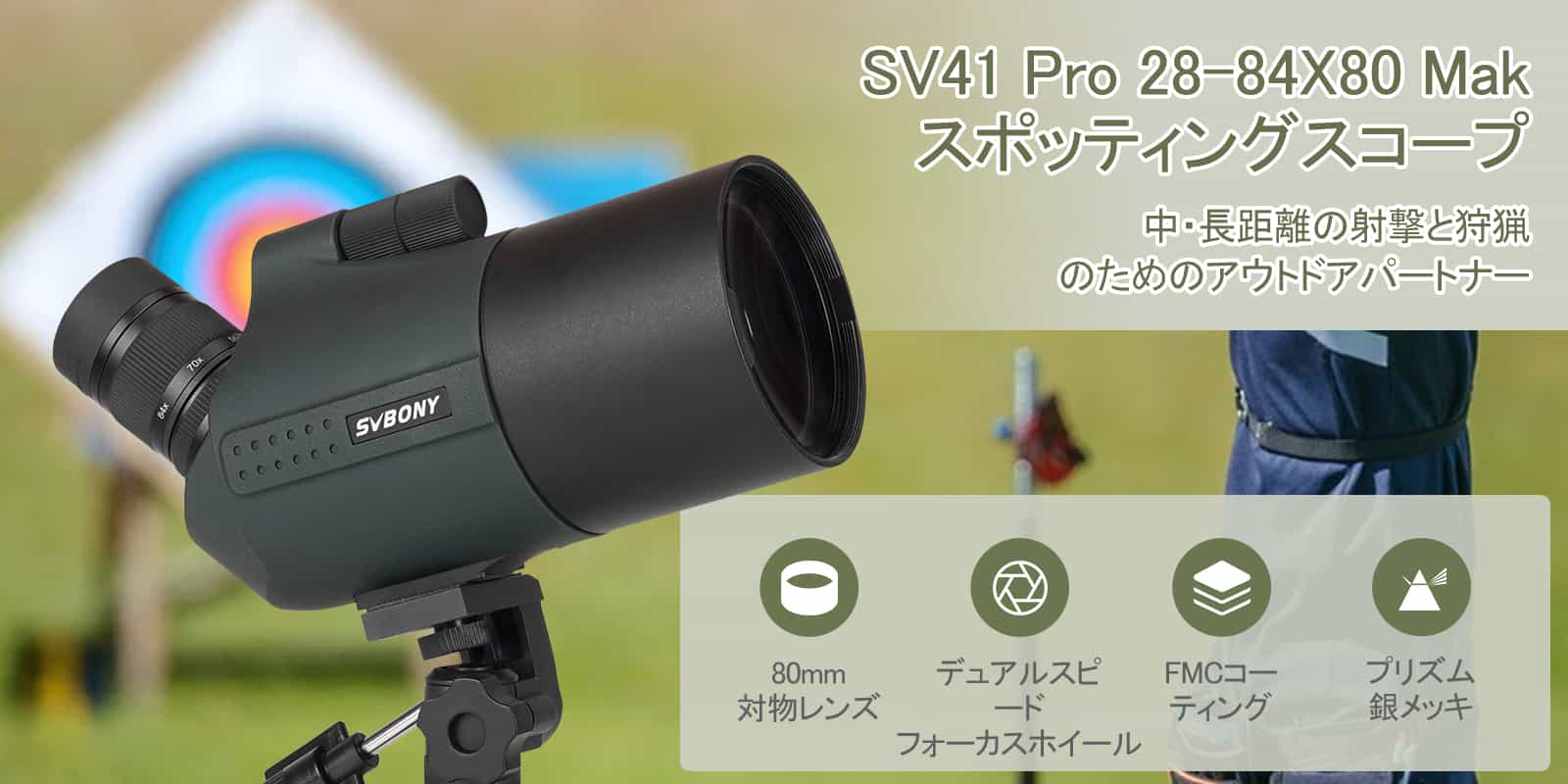 SV41Pro は 28-84X80mm MAKスポッティングスコープです。中距離および長距離の射撃や野鳥観察に適しています。このSV41 Pro MAKスポッティングがあれば、美しい景色を見逃すことはありません。