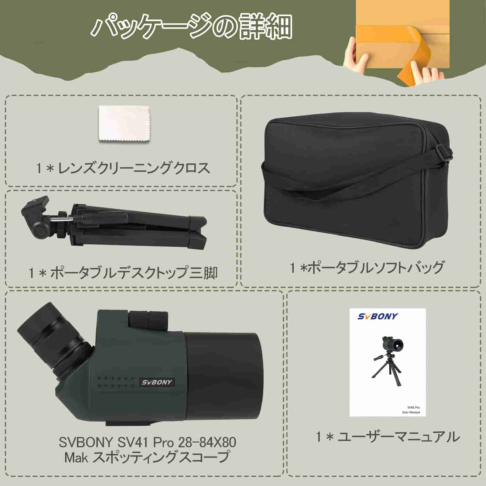 5 | レビューSV41Pro は 28-84X80mm MAKスポッティングスコープです。中距離および長距離の射撃に適しています。精密射撃者が狙いを正確に調整できるようになります。 このSV41 Pro MAKスポッティングがあれば、美しい景色を見逃すことはありません。