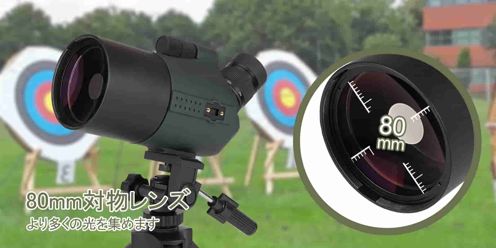 80mmの大型対物レンズは、長距離の細部を捉えるのに十分な光を提供し、画像の明るさを向上させます。