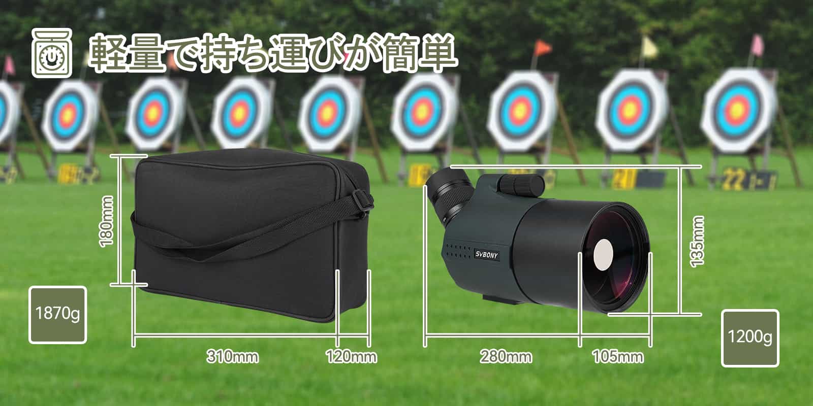 IPX7防水により湿気を防ぎ、スポッティングスコープは厳しい環境にも耐えることができます。