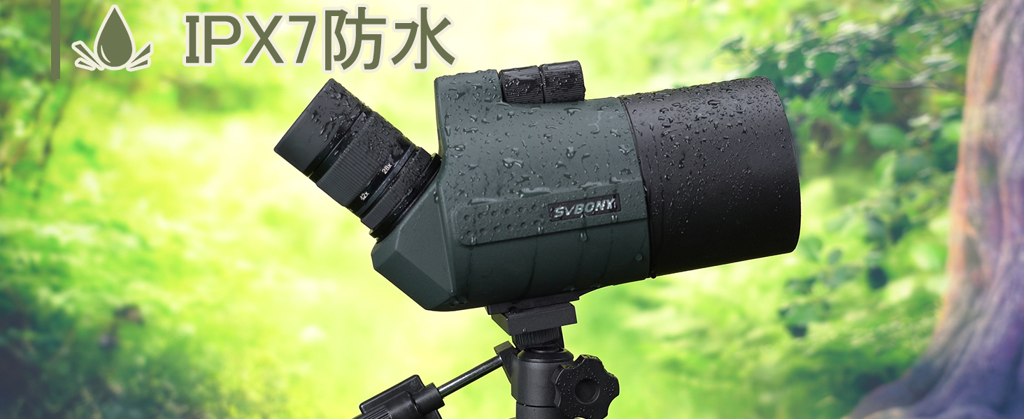 【IPX7防水】IPX7防水により湿気を防ぎ、スポッティングスコープは厳しい環境にも耐えることができます。