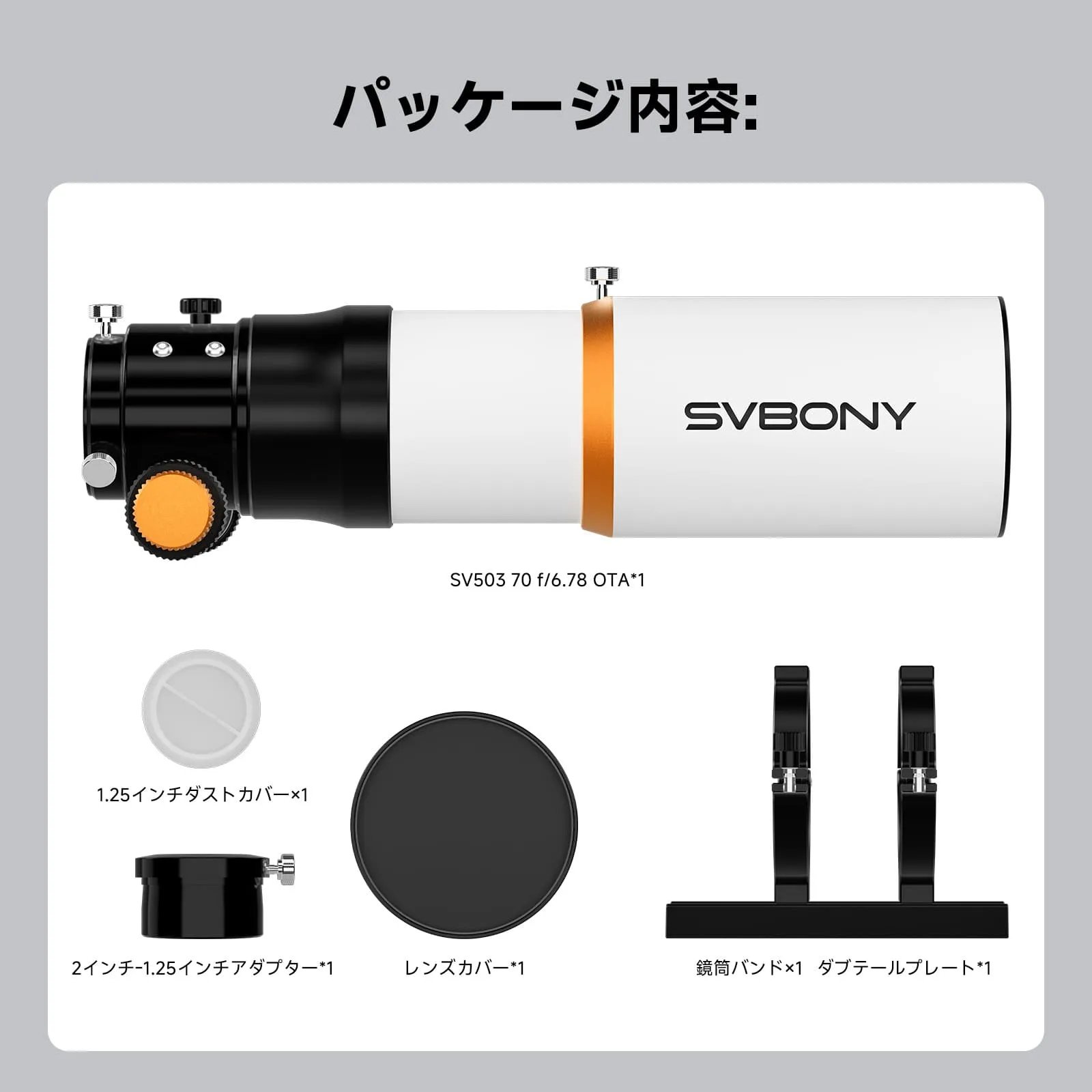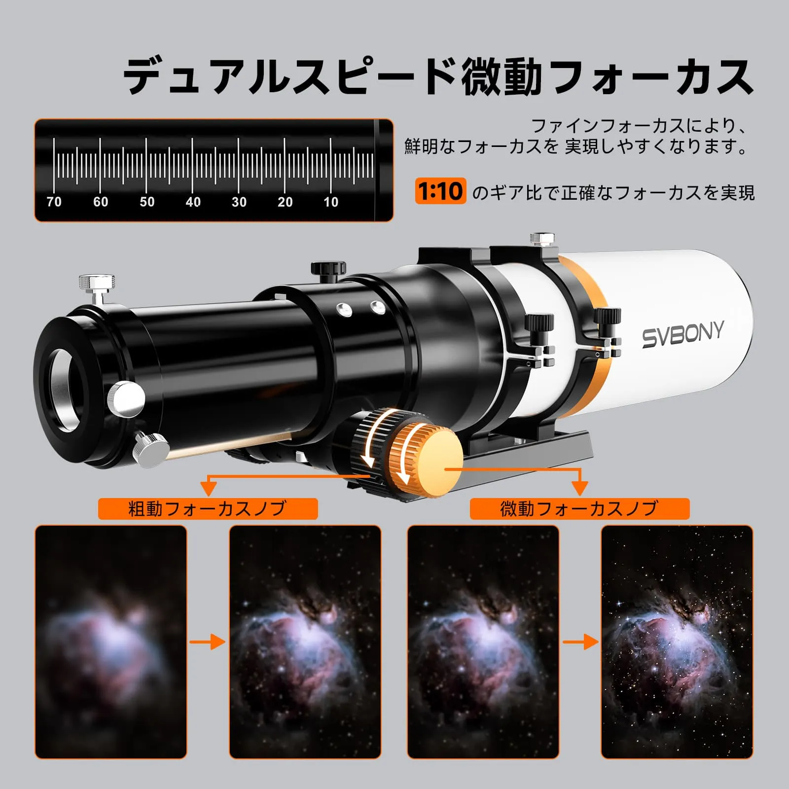 f/6.78と70mmの口径を持つSV503屈折望遠鏡は、銀河、星雲、星団などの明るく鮮明な画像を提供します。