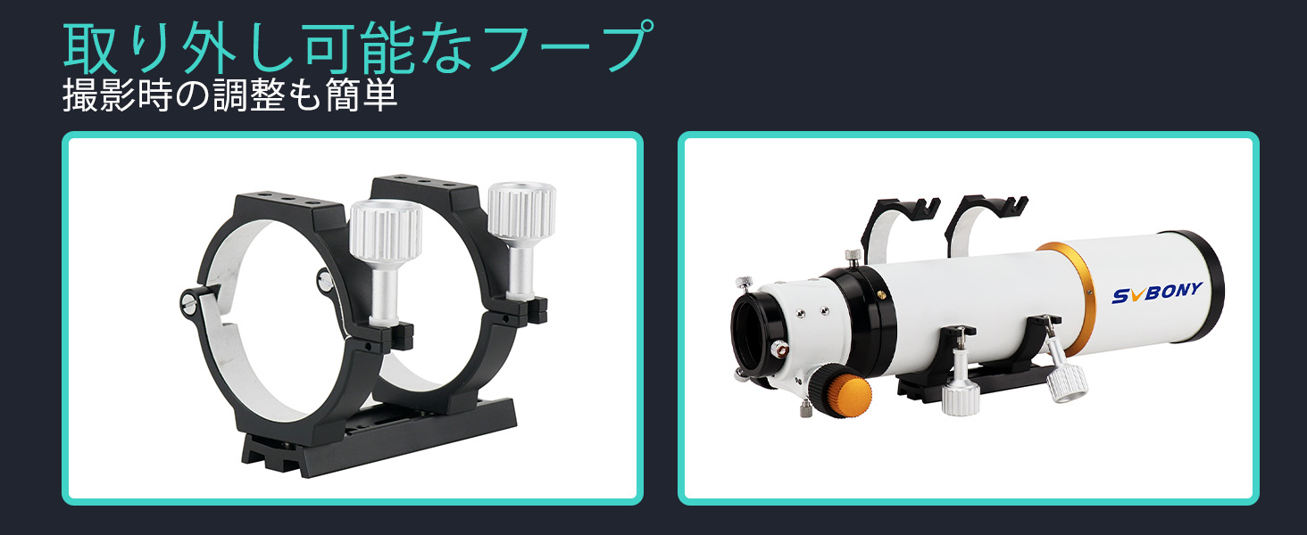 本体は小型・軽量・コンパクトで持ち運びにも便利で、操作時の取り扱いも楽です。また、鏡筒バンドは完全に取り外すことができますので収納が簡単になります。