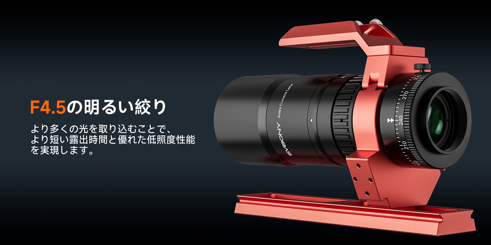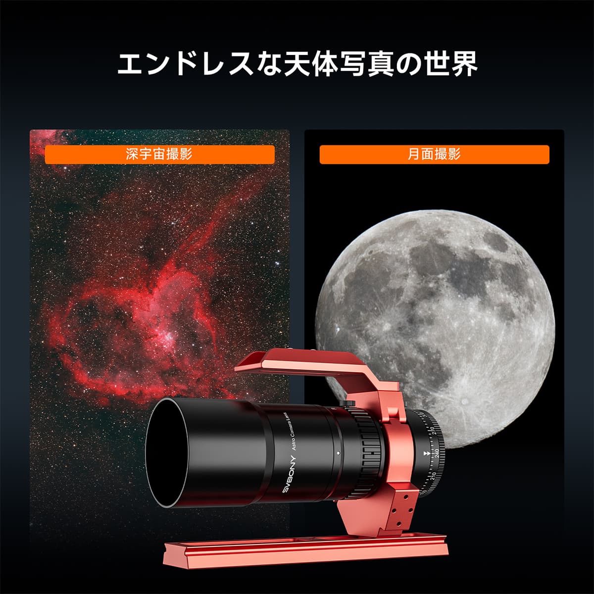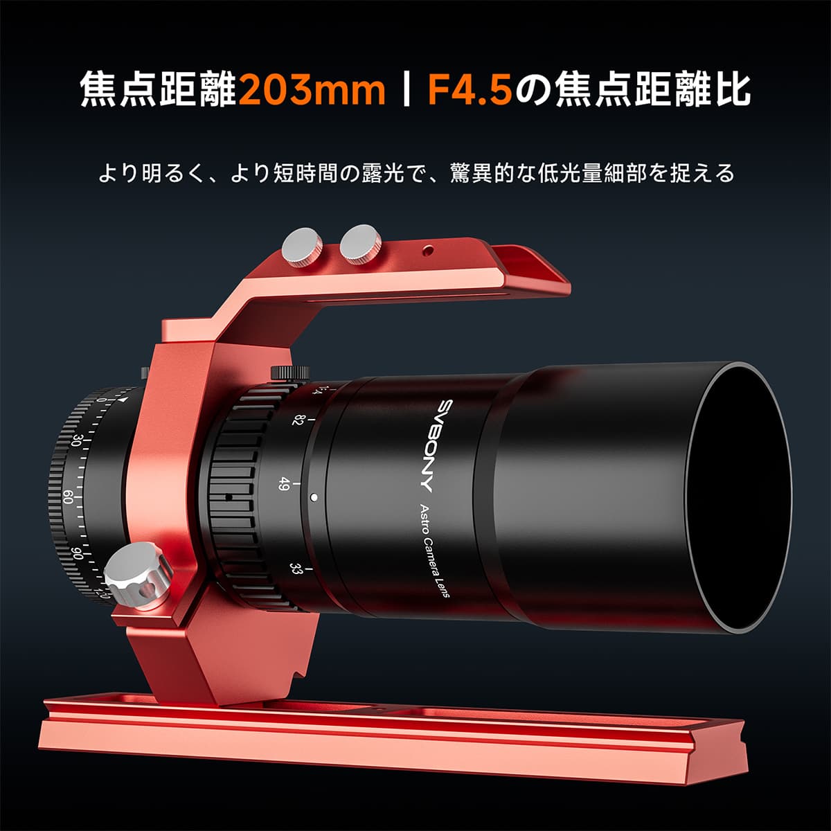 【広角高効率】SV545 天体写真望遠鏡は、広大な夜空を撮影します。203 mm の焦点距離と f/4.5 の絞りにより、高効率画像を実現し、暗い場所でも安定した性能を維持します。