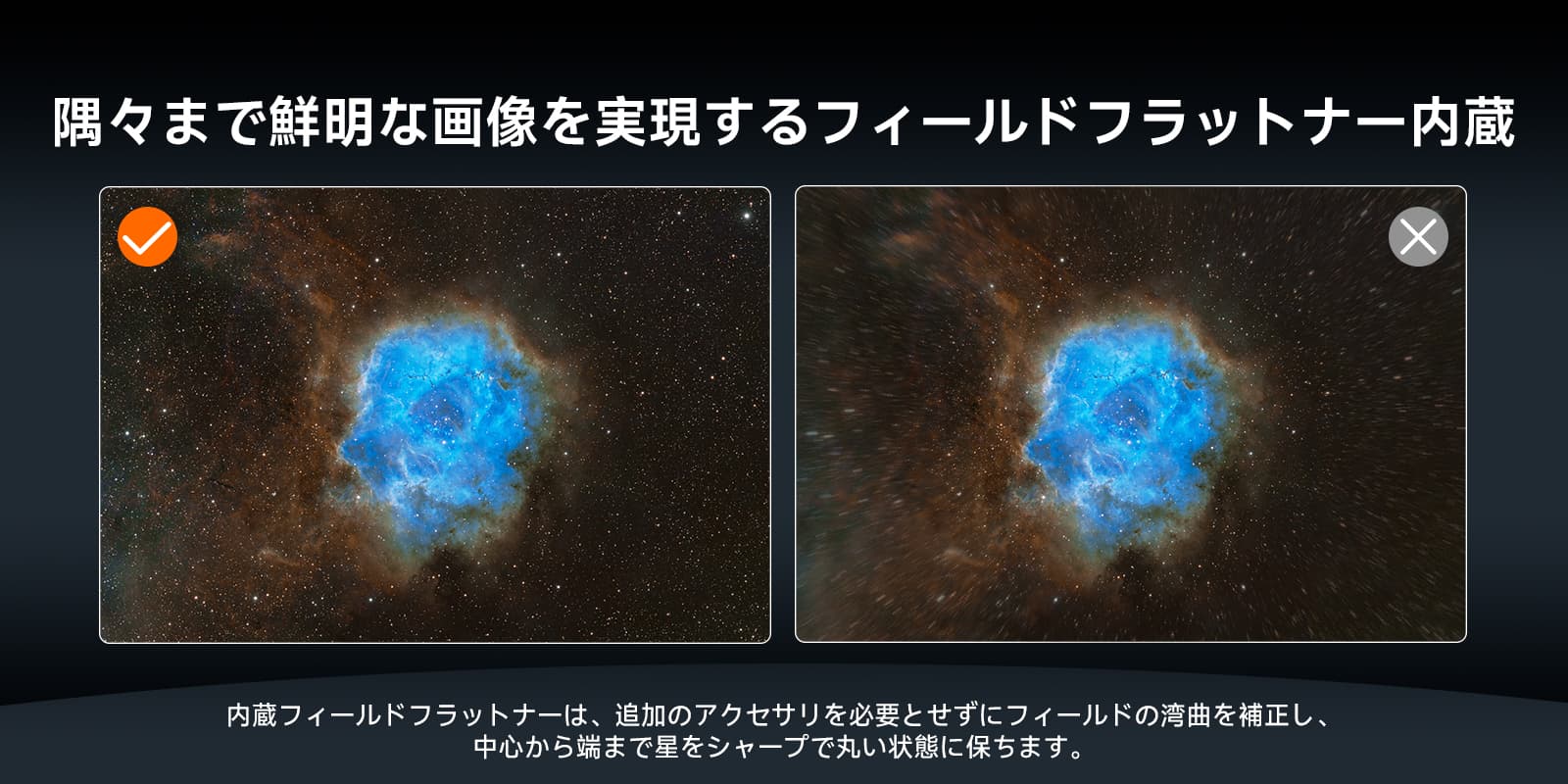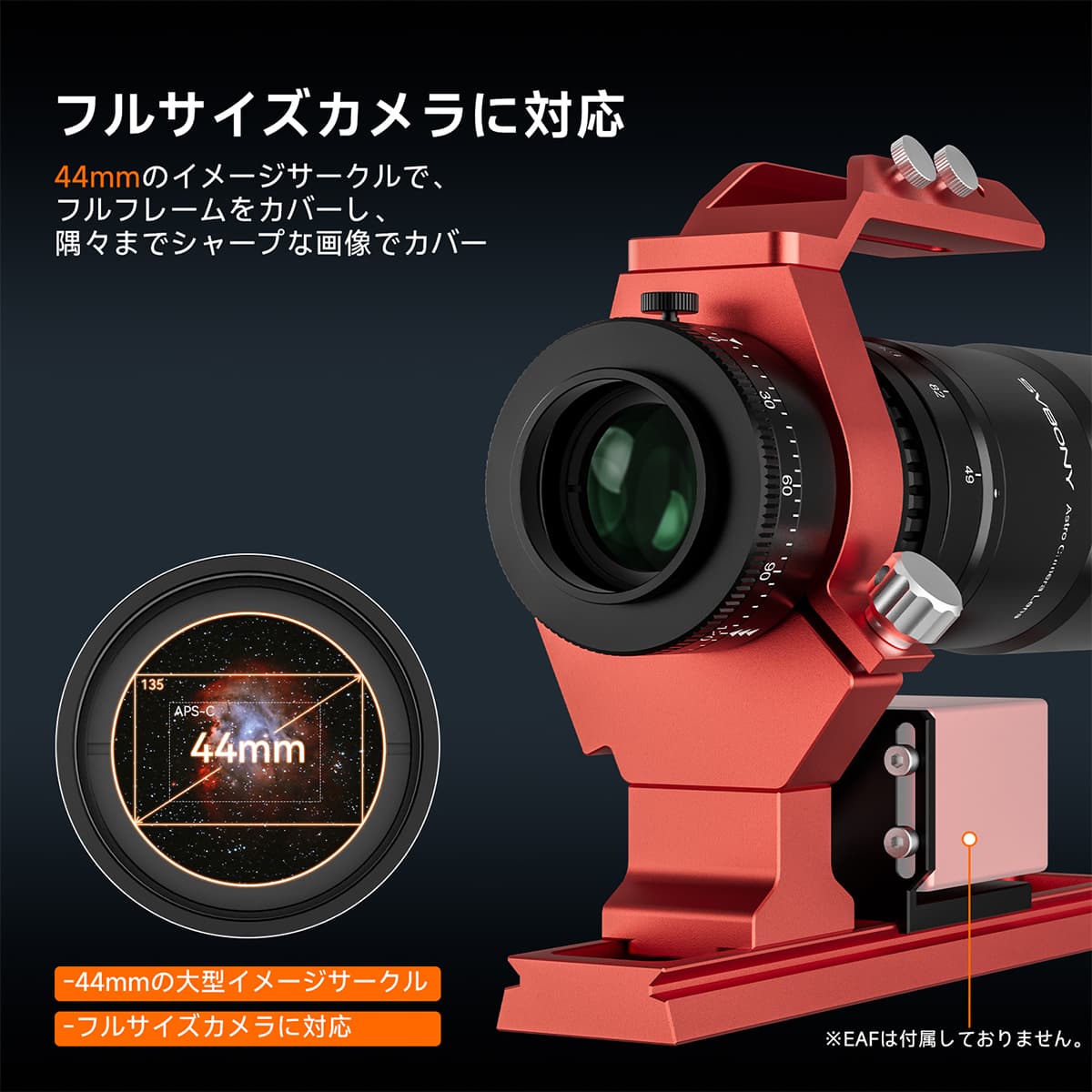 【44mmフルフレーム】APO天体写真望遠鏡は、ミラーレスカメラ、デジタル一眼レフカメラ、天文カメラのいずれであっても、絞りのブロッキングを回避でき、鮮明な画像を簡単にキャプチャできます。