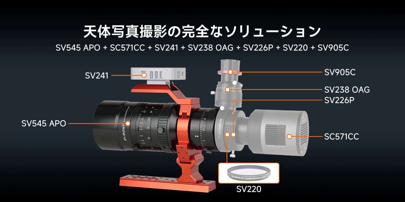 SV545 アストログラフ f/4.5 焦点距離203mm 2インチフィルターの取付をサポート