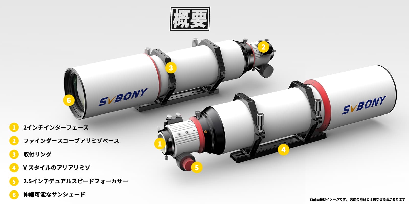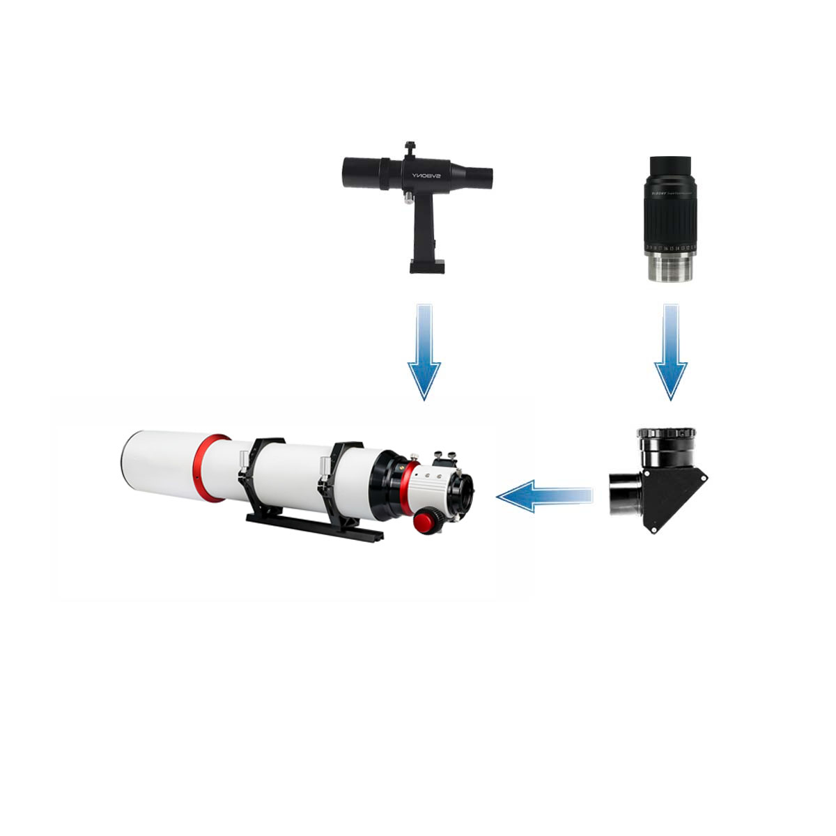 セット2:SV550 122mmの標準付属品に加えて「SV223天頂ミラー」「SV211 CNC仕上げ鏡筒ハンドル」「SV135ズームアイピース」「SV182 正立ファインダー」が付属