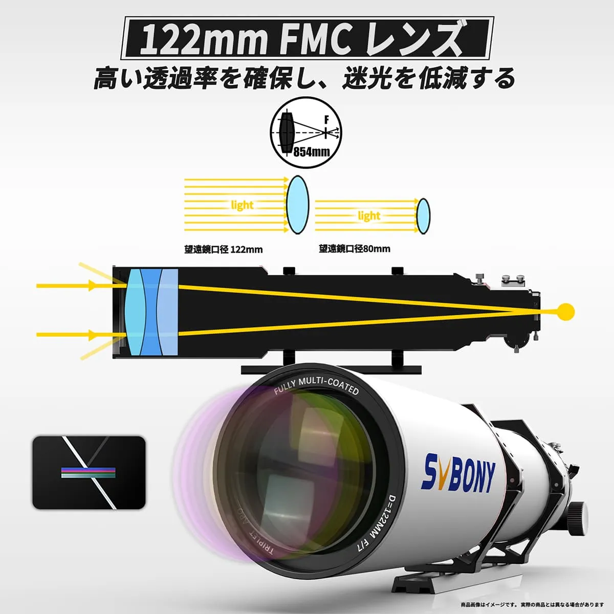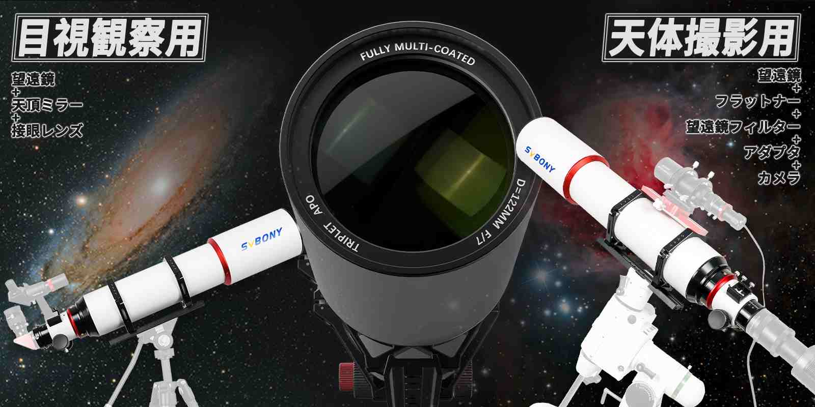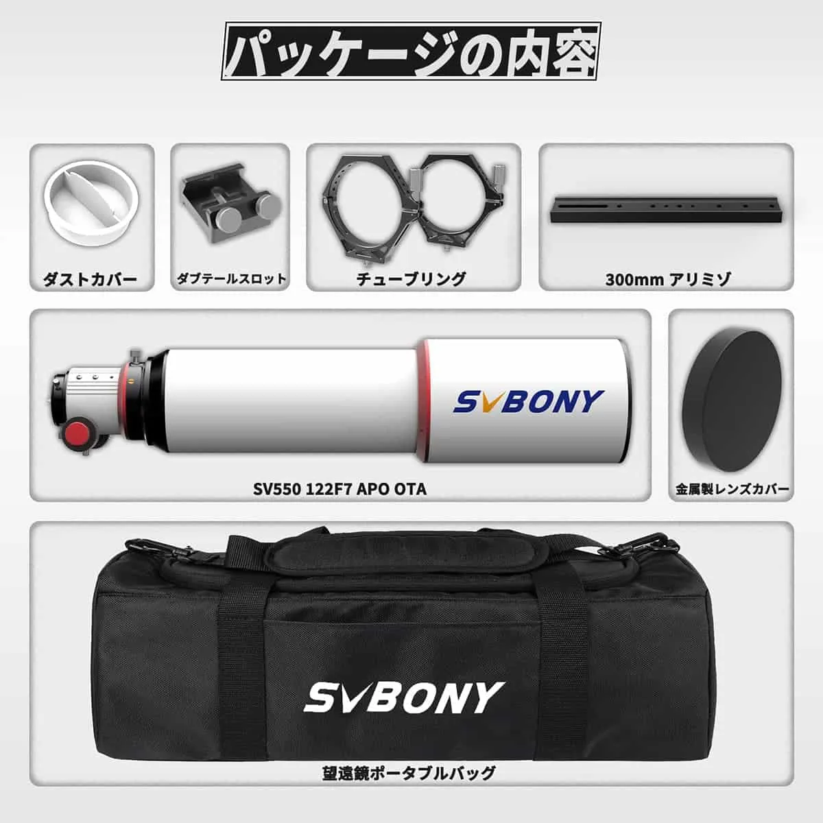 SVBONY SV550 122mm APO 三枚玉アポクロマート屈折式望遠鏡 口径122mm F7 観望撮影両用 鏡筒バッグ付き