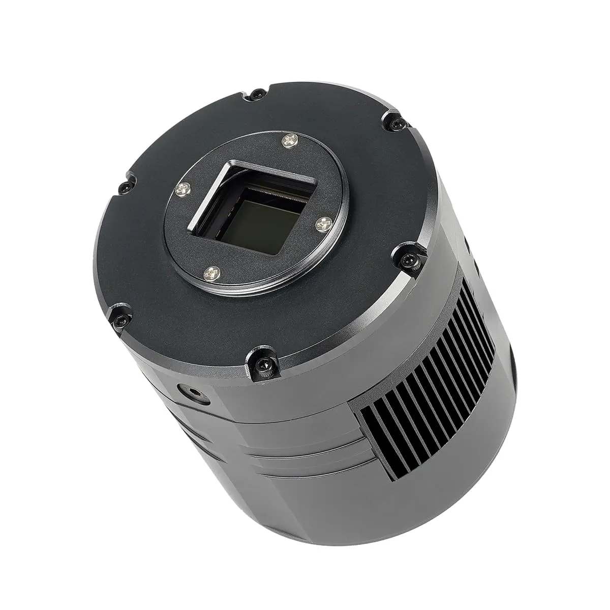 - 2段階サーモエレクトリッククーラーにより、CMOSセンサーを周囲温度より30℃低く冷却します。暗電流を大幅に減少させることで、数百秒の長時間露光でもノイズが少ないです。注意:冷却等での電力消費を賄うために十分な容量を持つDC12Vの外部電源が必要です。