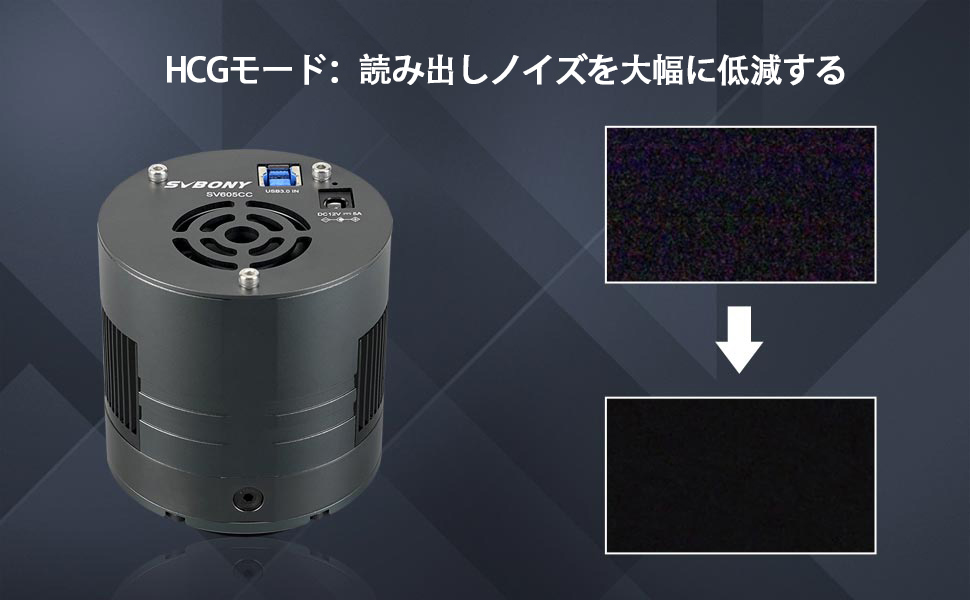 SV405CCカメラと比較すると、アンプ・グローの問題を最小限に抑えることができます。SV605CCはアンプ・グローの問題を抑え、特に露光時間やゲインを頻繁に変えるような電視観望をしている場合は、圧倒的に有利です。ノンアンプグロー機能を搭載しています。簡単にカブリや輝点の少ない画像を得ることができます。