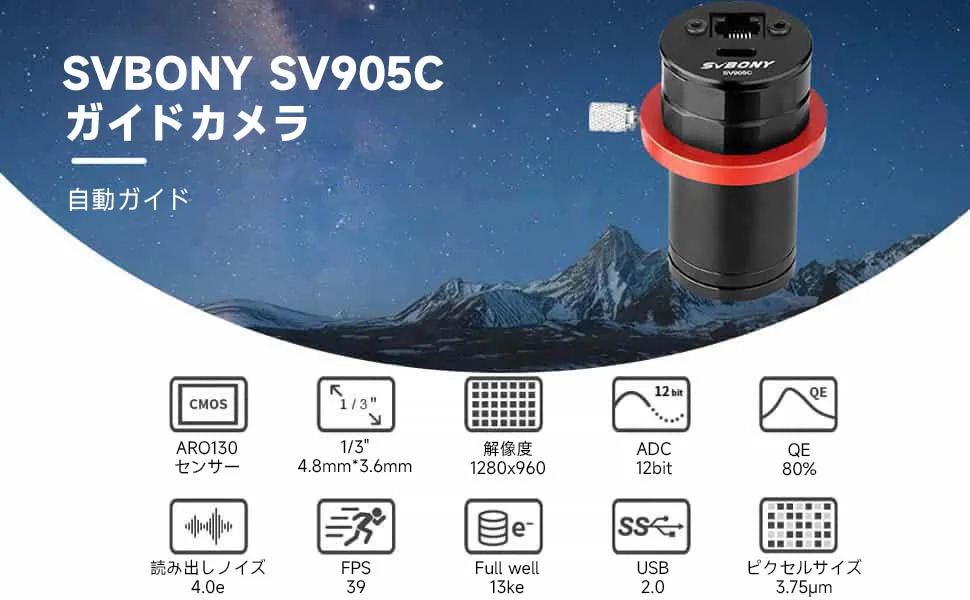SV905C オートガイディングカメラ [カラー] AR0130センサー搭載 オートガイド入門に最適 天文カメラ 天体写真用