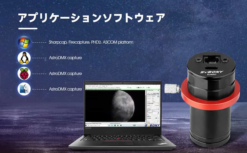 SV905C ガイディングカメラは、惑星のイメージング、月と太陽のイメージング、およびいくつかの明るい深宇宙のオブジェクトのイメージングのための高感度で高速のカラー天文学カメラです。