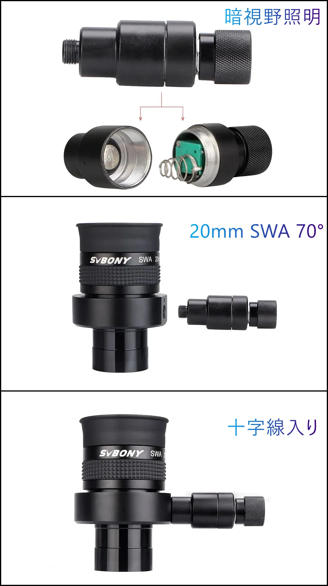 2、SV152 1.25インチ接眼レンズ クロスヘアアイピース 20mm SWA 70°