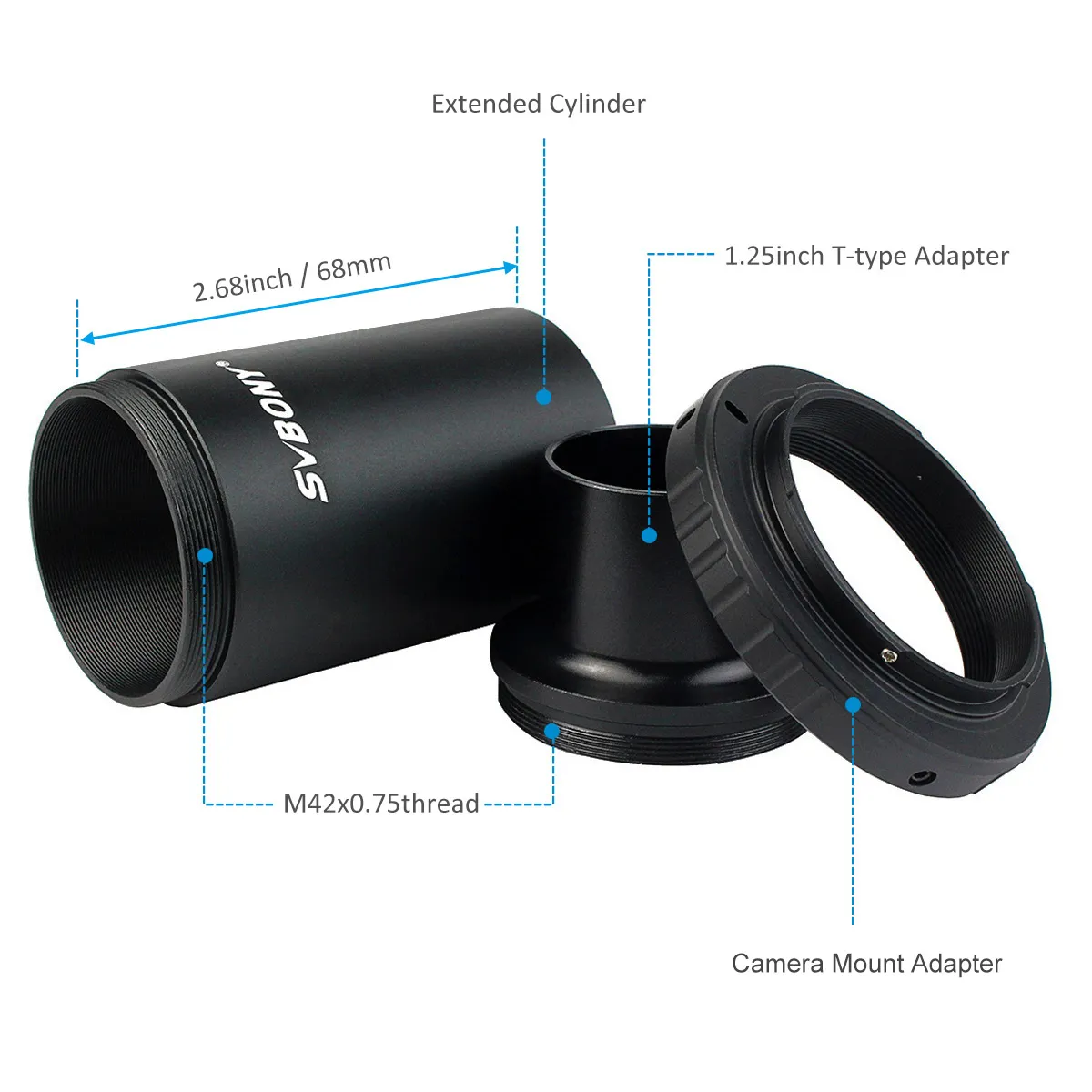 3、SVBONY延長チューブは、すべての標準1.25インチ望遠鏡と顕微鏡に適合。