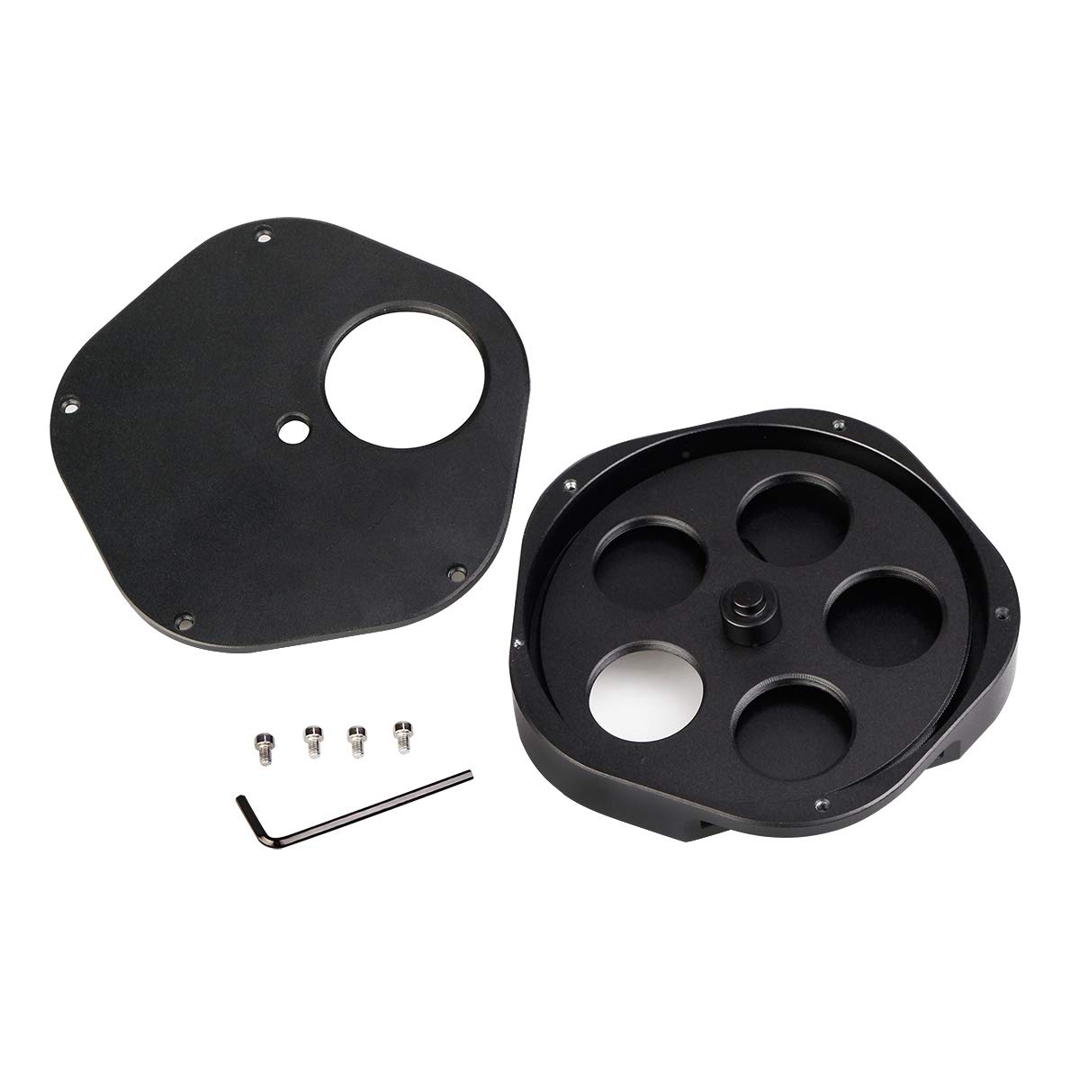 2、この1.25インチフィルターホイールを使用すると、最大5つの異なるフィルターを使用して、わずか数秒でそれらを変更できます。フィルター位置が数字の1〜5で示されます。取り付け中に各フィルターの参照番号をメモして、花輪を回転して希望の数字はフィルターホイールハウジングの小さなノッチに表示されます。