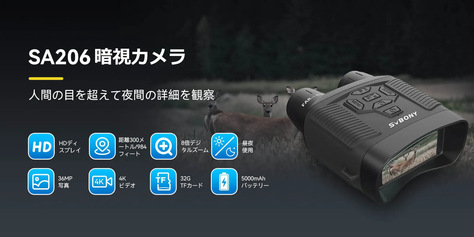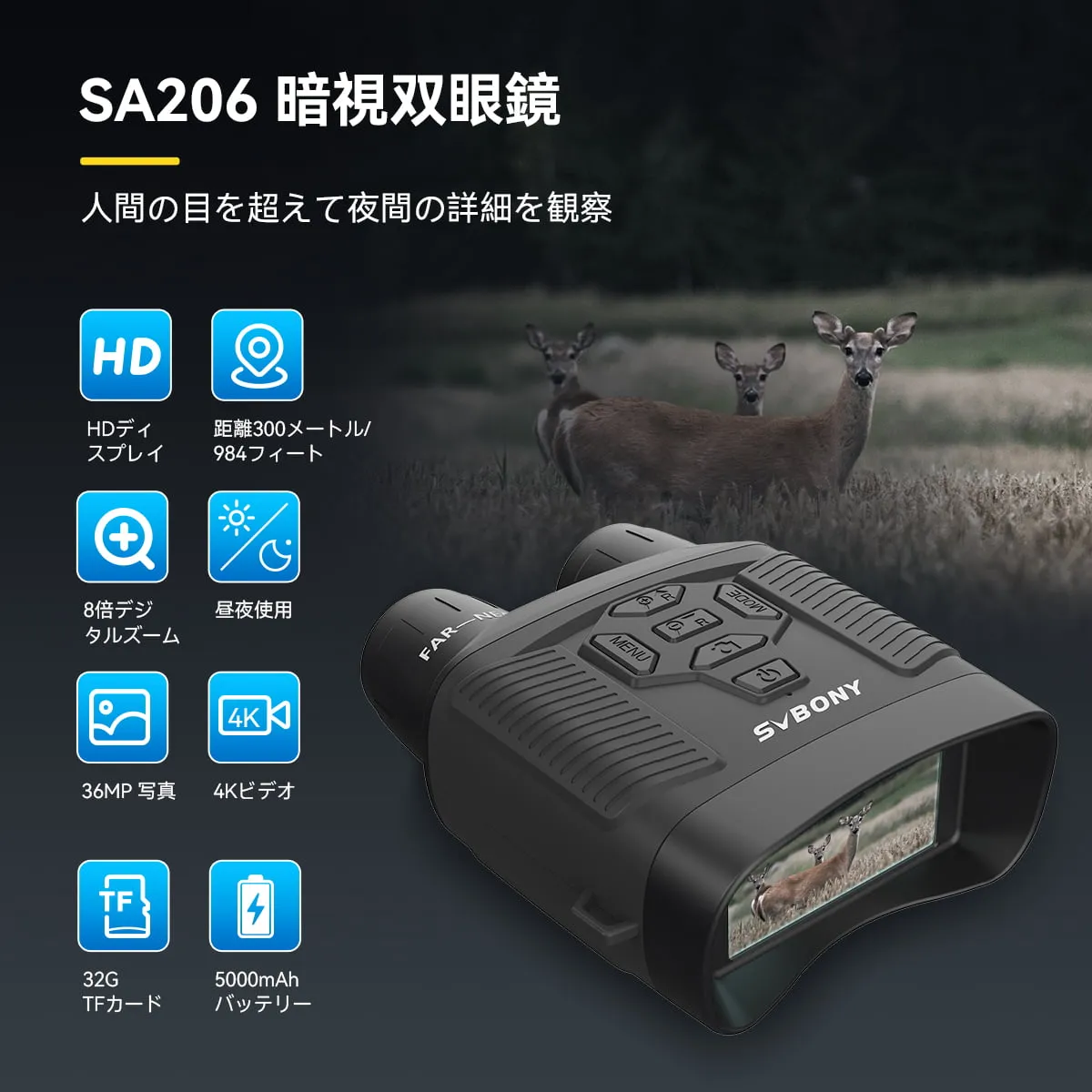 SA206 暗視カメラ 暗視鏡 暗視スコープ 暗視望遠鏡 昼夜兼用 野生動物の観察 夜釣り バードウォッチング キャンプ