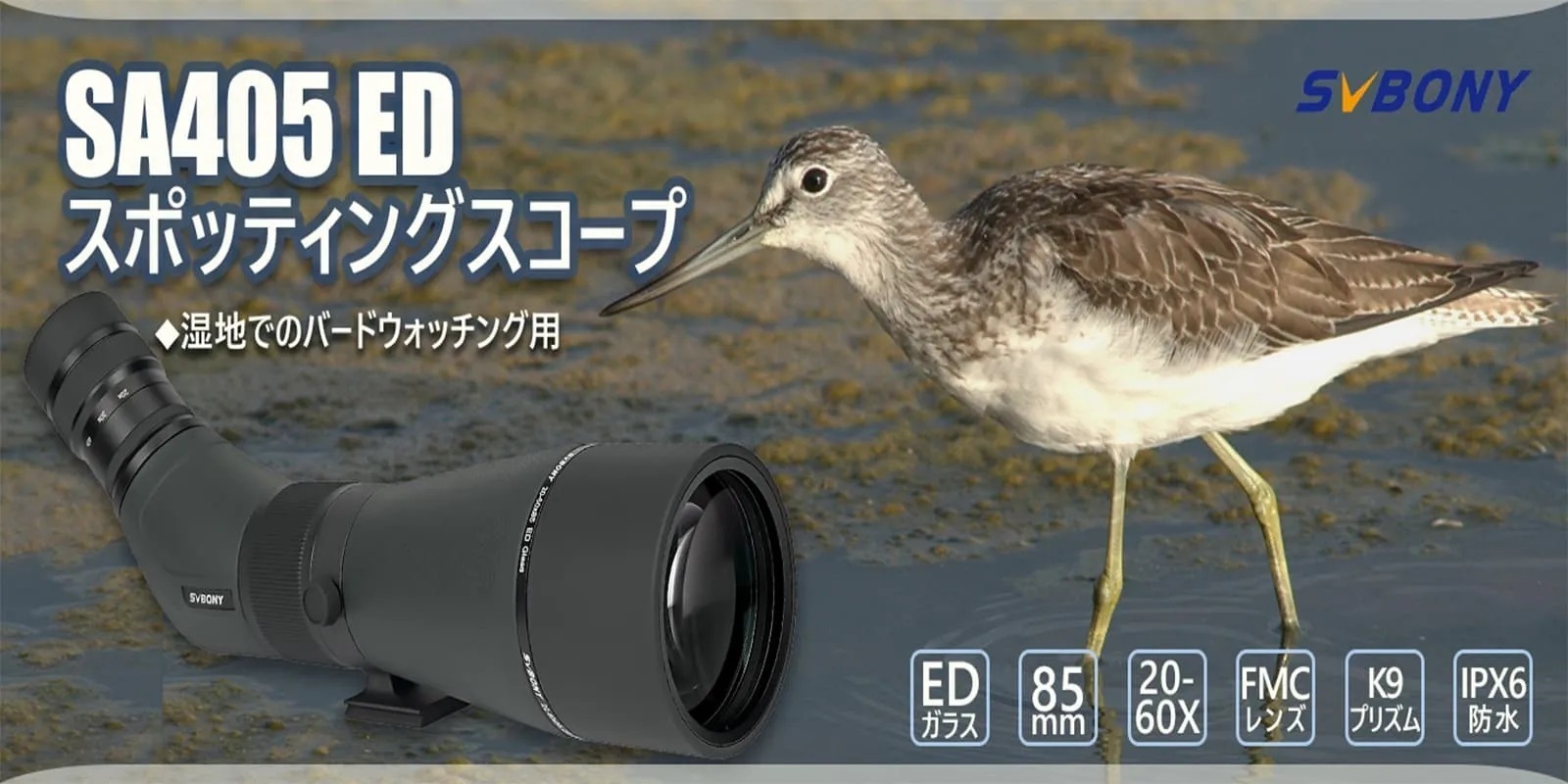 - SA405はED(特殊低分散)レンズ採用のフィールドスコープです。空気分離式対物レンズを採用し、色にじみの極めて少ないコントラストに優れた視野を実現します。