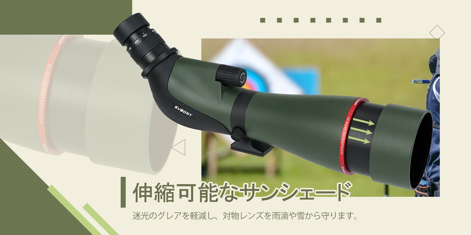 野生動物や野鳥の観察、天体観察、アーチェリーや射撃の標的確認など幅広く利用できます。