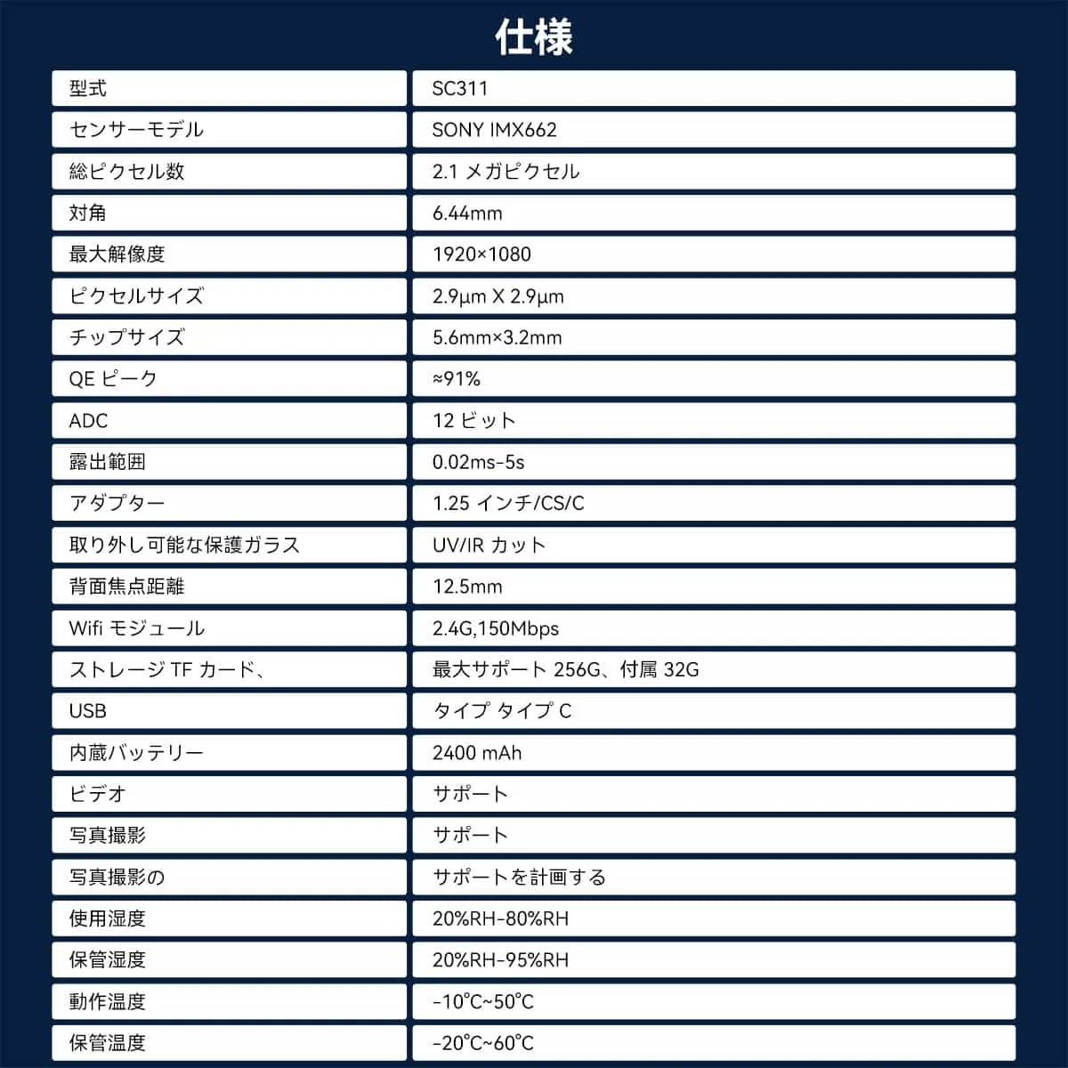 SC311 WIFI 天文カメラ Sony IMX662 裏面照射型センサー 天体写真用 EAAに最適