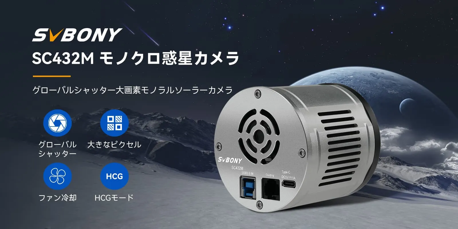 SVBONY SC432M ソーラーカメラ IMX432 HCGモード モノクロ天文学カメラ 冷却システム