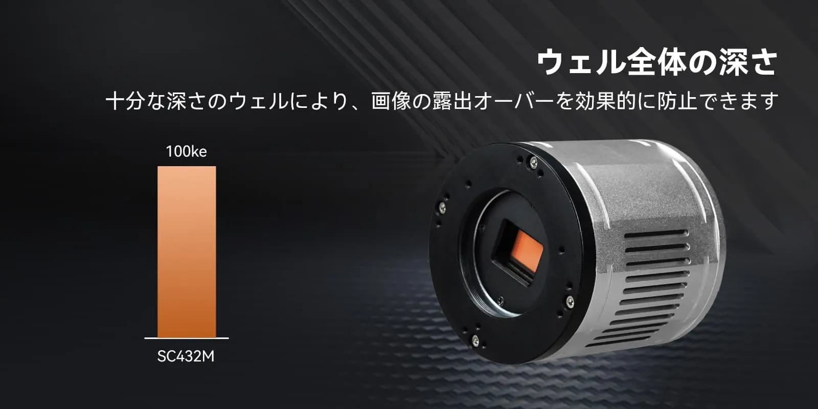 SC432M の完全なウェル深さは 100ke です。太陽の表面やプロミネンスを撮影したいとき、非常に高品質の画像が得られます。