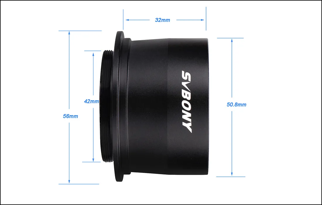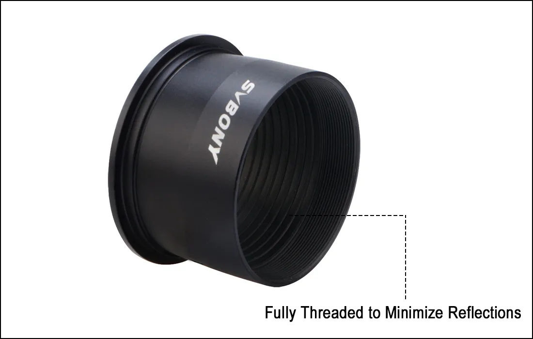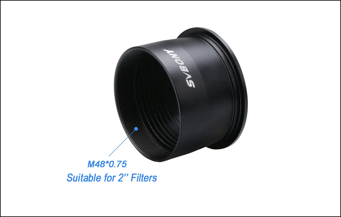 1. Svbony 2 ''からT2カメラアダプターはすべての2 ''フォーカサーに適合し、アダプターの端には標準の2 ''フィルターを受け入れるようにねじが切られています