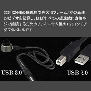 5 | レビュー1、3264X2448の解像度で最大15フレーム/秒の高速2Kビデオを記録し、ほぼすべての望遠鏡に直接ネジで接続するためのアルミニウム製の1.25インチアダプタバレルです。