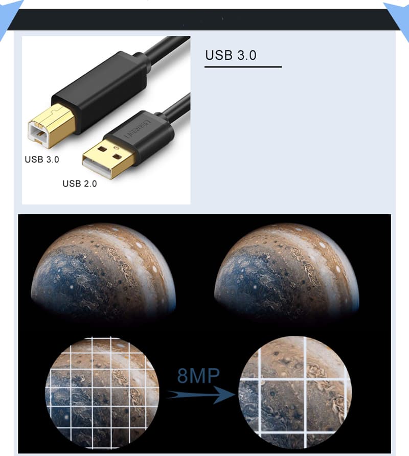 2、USB3.0は転送速度を向上させ、最大60Mバイト/秒のデータ転送速度を実現し、フレームレートは実際の伝送速度限界に近い3264X2448以下です。