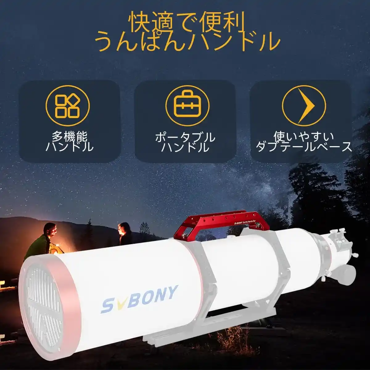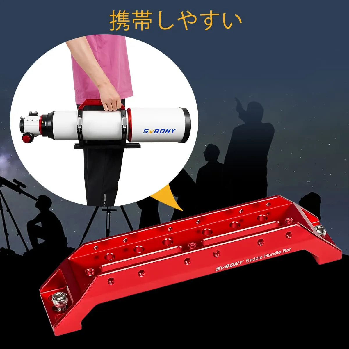 携帯用ハンドル。SV211アリ型プレート快適で便利な携帯用ハンドル;組み合わせ設置後、大口径望遠鏡は簡単に持ち運び、移動することができます。