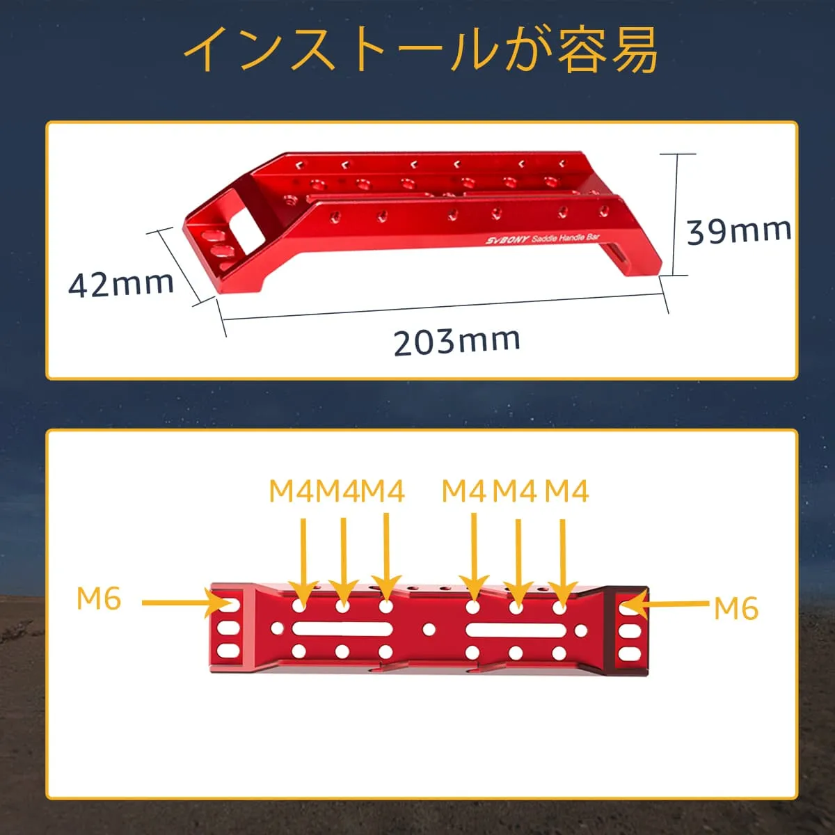 取り付けが簡単。 SV211ファインダースコープマウントブラケットの長さは203mmです。 M6 取り付けネジ 2 本付き。 M4 止めネジ 4 本。 M5 レンチ 1 本。 簡単に取り付け、取り外しができます。
