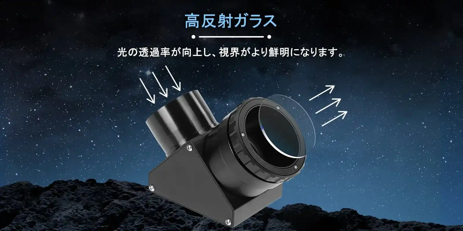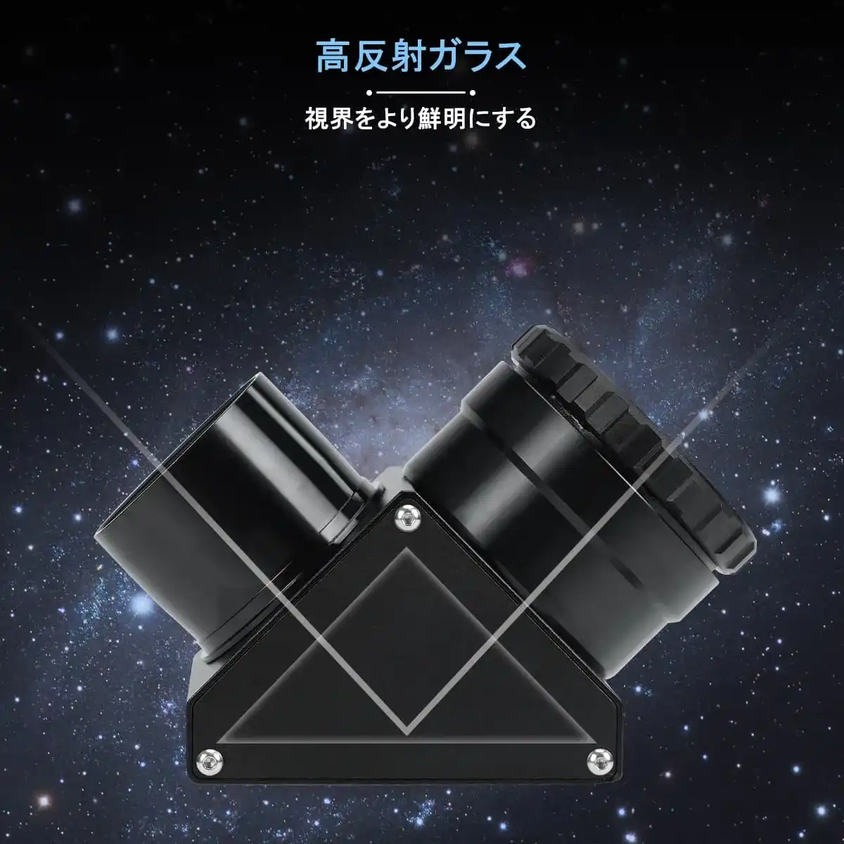 天頂ミラーは望遠鏡内の光路の方向を変えるので、見やすい位置が可能になります。