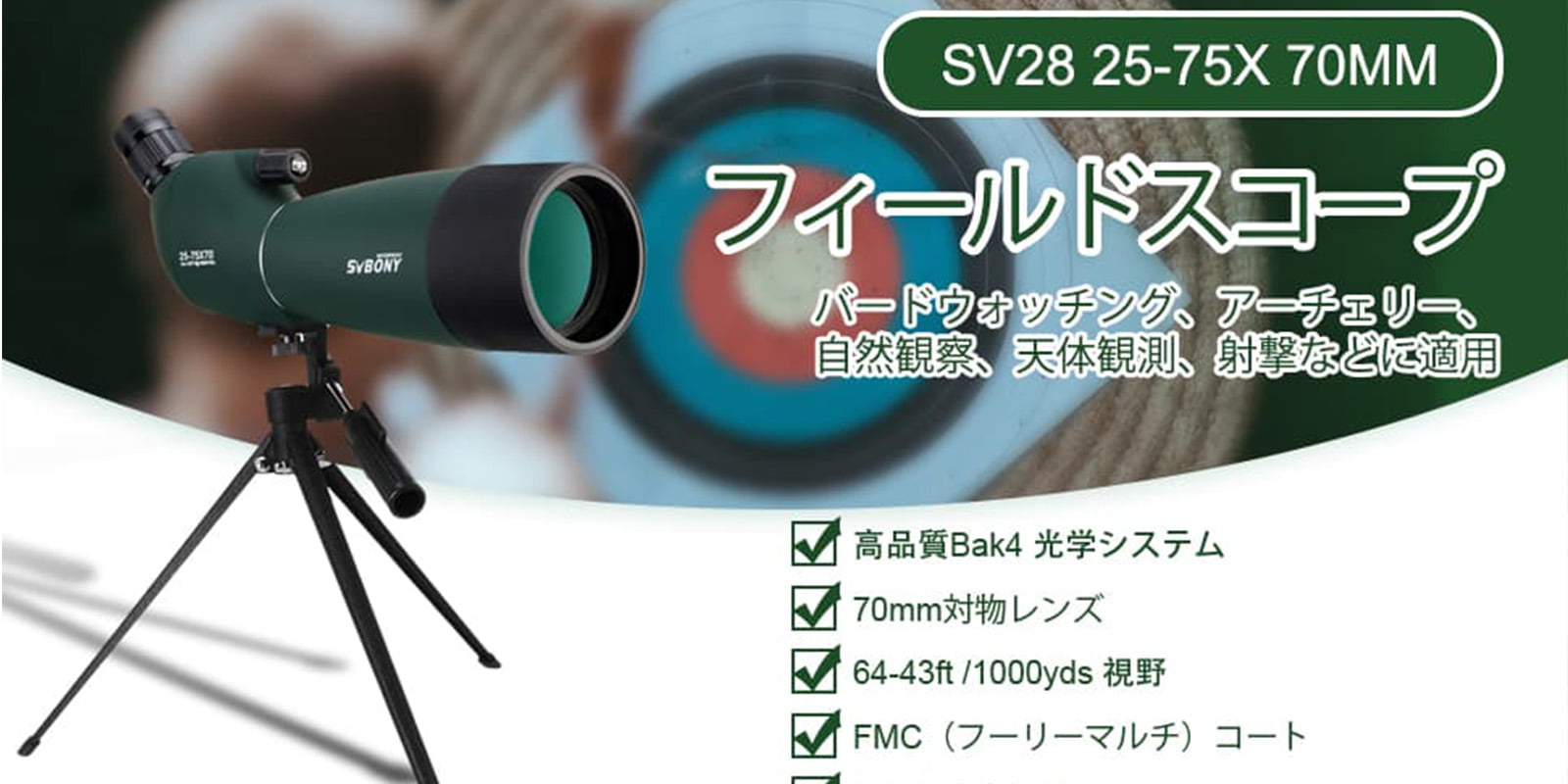 - SV28は25-75x高倍率フィールドスコープです。バードウォッチングはもちろん、アーチェリー、自然観察、天体観測、射撃などに適用します。