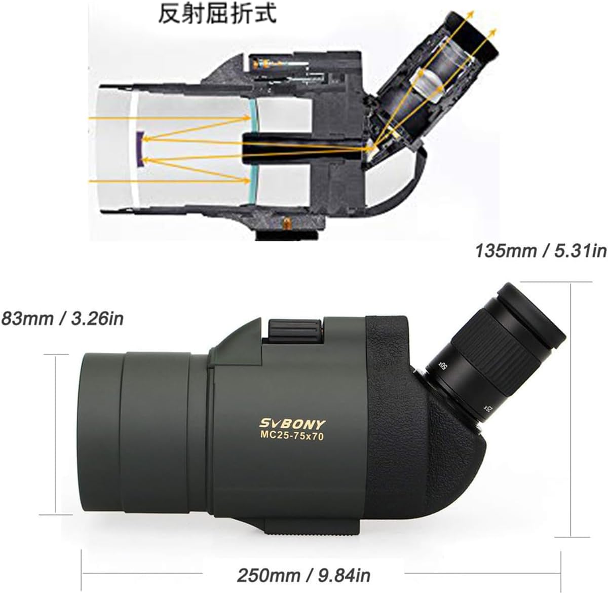 SVBONY SV41 フィールドスコープ 25-75x70mm BAK4 FMC 反射屈折式 野鳥観察 自然観察 射撃 ターゲット観測 卓上三脚付き