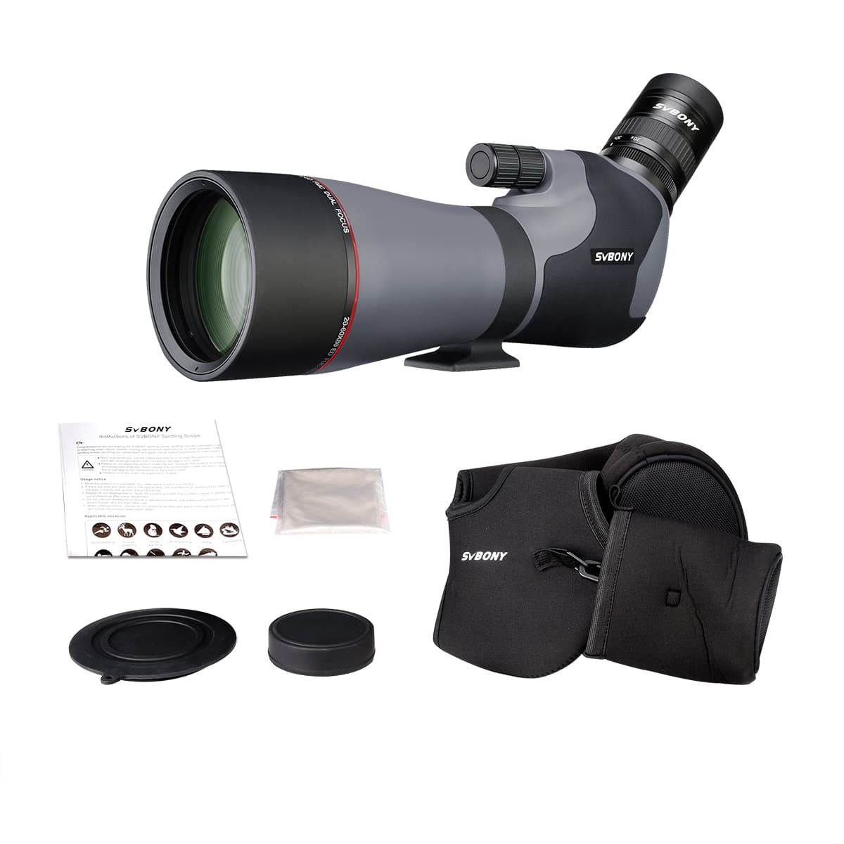 SVBONY SV46P 20-60x80mmフィールドスコープ EDガラス 射撃 バードウォッチング 野鳥観察 星空観測向け