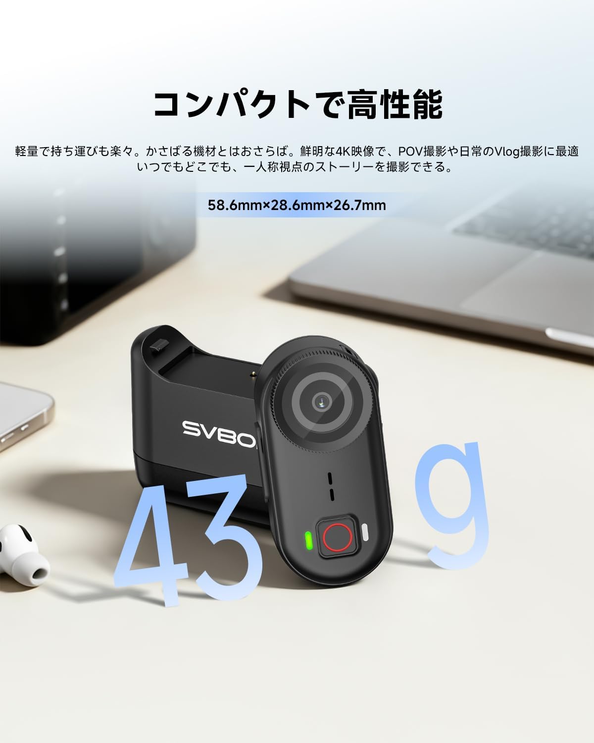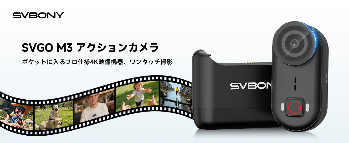 SVBONY SVGo M3 小型アクションカメラ 超軽量43g 4K30fps 300分録画 内蔵 64GB 10m防水 本体43℃発熱抑制 スマホ連携 豊富なアクセサリーVlogカメラ 証拠撮影 会議 自転車に最適