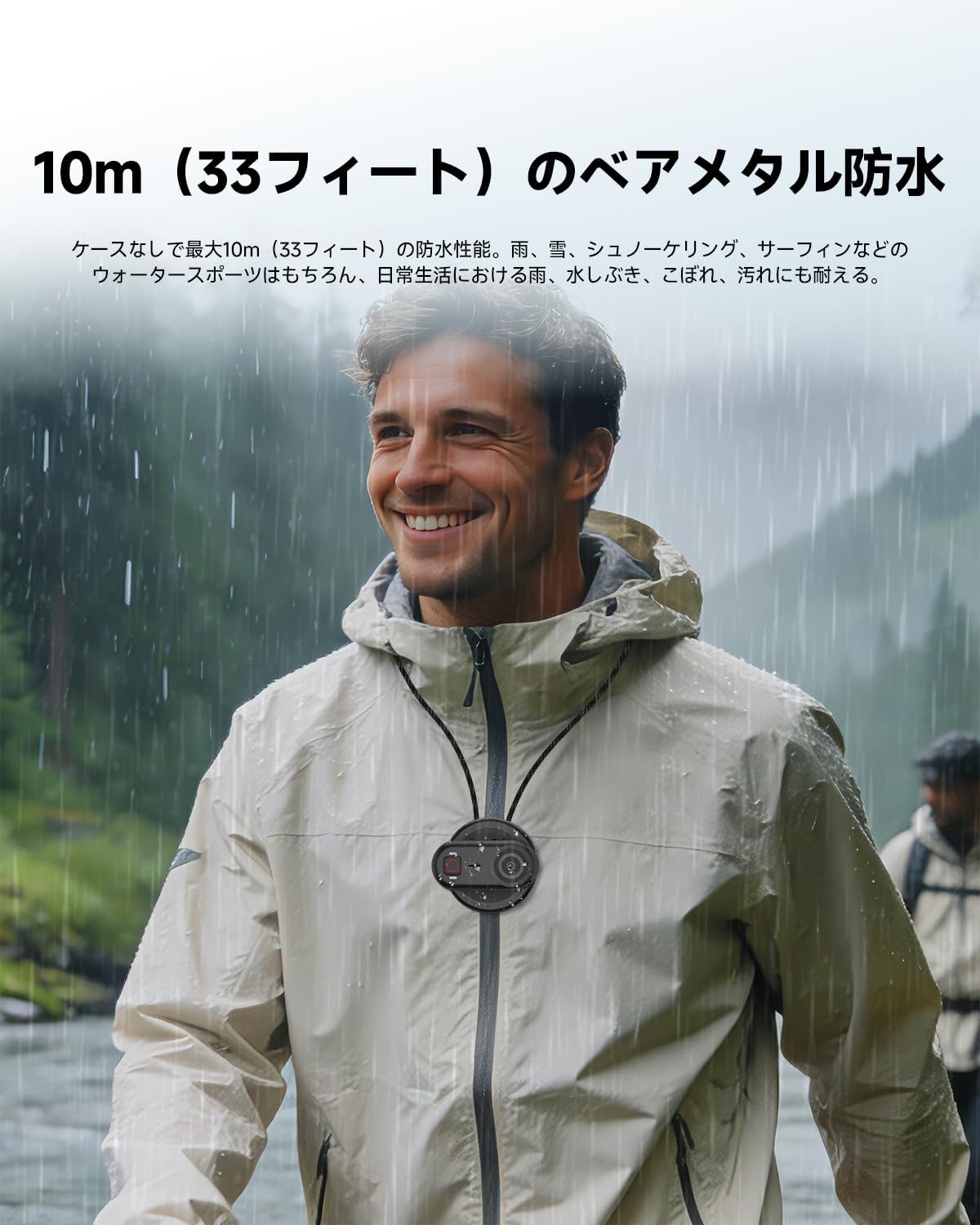 - 本体10 メートル防水:このポケットアクションカメラはコンパクトながらも頑丈で、IP68規格の防水性能(水深10mまで)を備え、ハウジングを必要とせず、雨の日でもサーフィンや浅瀬でのダイビングでも、濡れた環境でも安心して撮影できます。