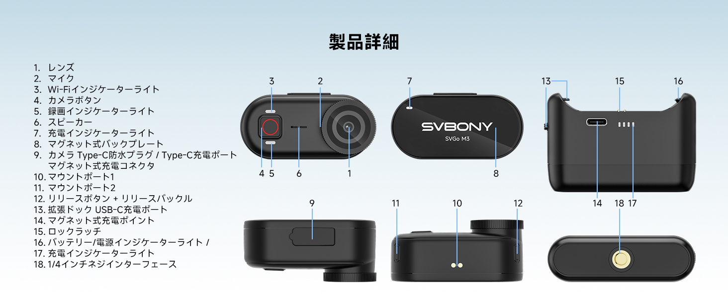- マグネット式クイックリリース:SVBONY SVGo M3 4Kボディカメラは、マグネット式クイックリリースシステムと豊富なアクセサリーを搭載し、幅広いシーンに対応します。カチッとはめるだけですぐに録画を開始できます。