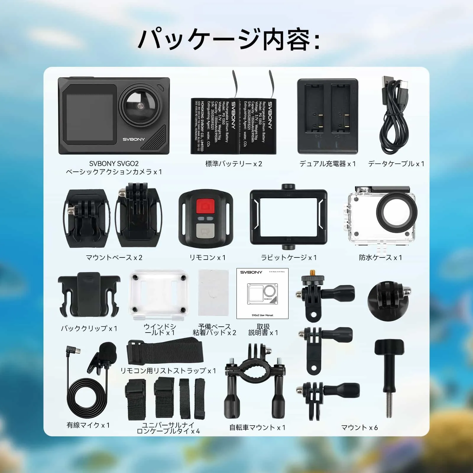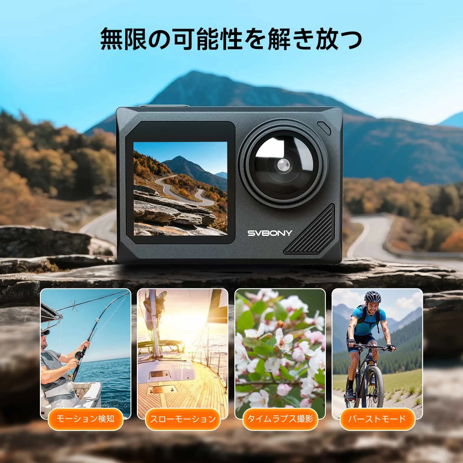 1 | ReviewsSVGo2 アクションカメラは、あなたの冒険の相棒です。4K/30fpsの鮮明な映像、水深30mまでのIPX8防水性能、そして安定した映像を実現する6軸EISを備えています。デュアルスクリーン、タッチコントロール、スローモーションやタイムラプスなどの撮影モードなど、多用途にお使いいただけます。初心者にも優しく、外付けマイクとデュアルバッテリーに対応し、最大3時間の4K撮影が可能です。