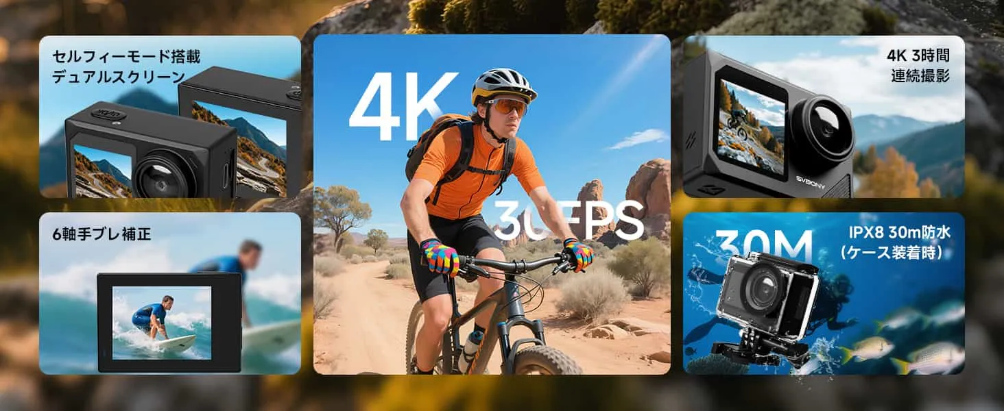 | 使用シナリオ | エントリーレベル | サーフィン、ビーチ | サイクリング | 夜間撮影、Vlogブロガー | アウトドアスポーツ愛好家、主にサイクリング |