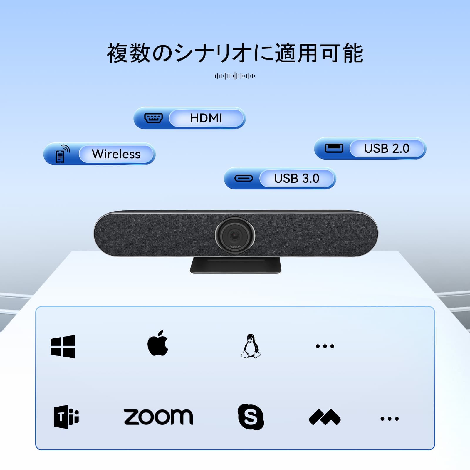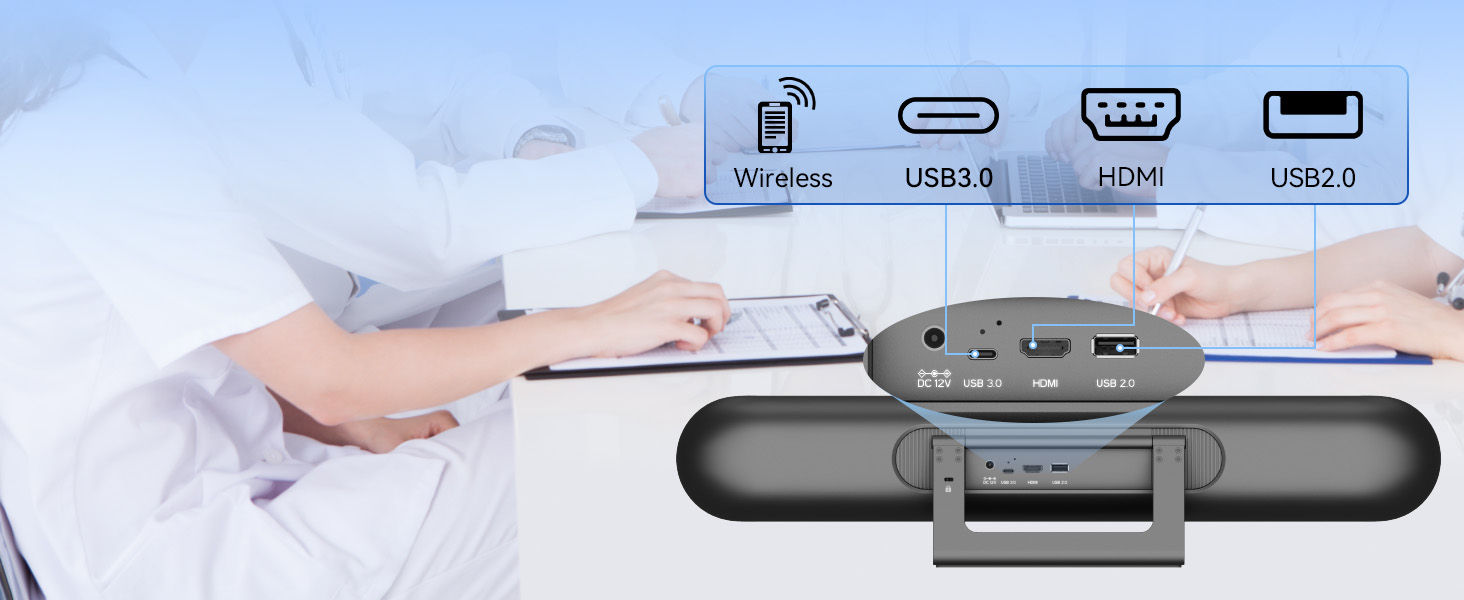 ・USB3.0、HDMIなどと互換性のある多機能インターフェースは、Bluetooth 5.0ワイヤレス接続も実現し、多様な会議伝送ニーズに対応したサービスを提供します。