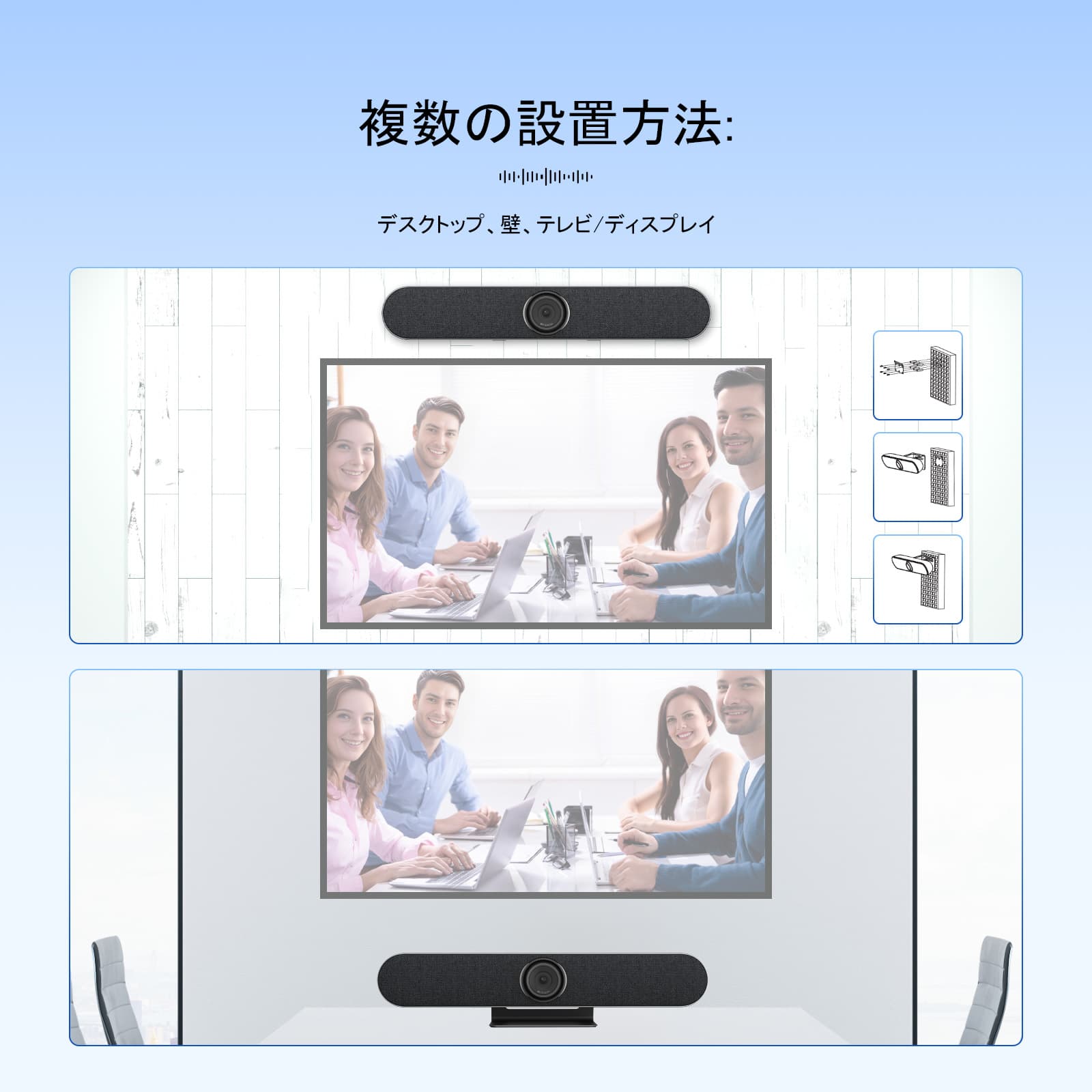 ・4K超高解像度カメラ、ビームフォーミングマイク、フルレンジスピーカーの3つを1つに統合した設計により、リモート会議がより便利で効率的になります。
